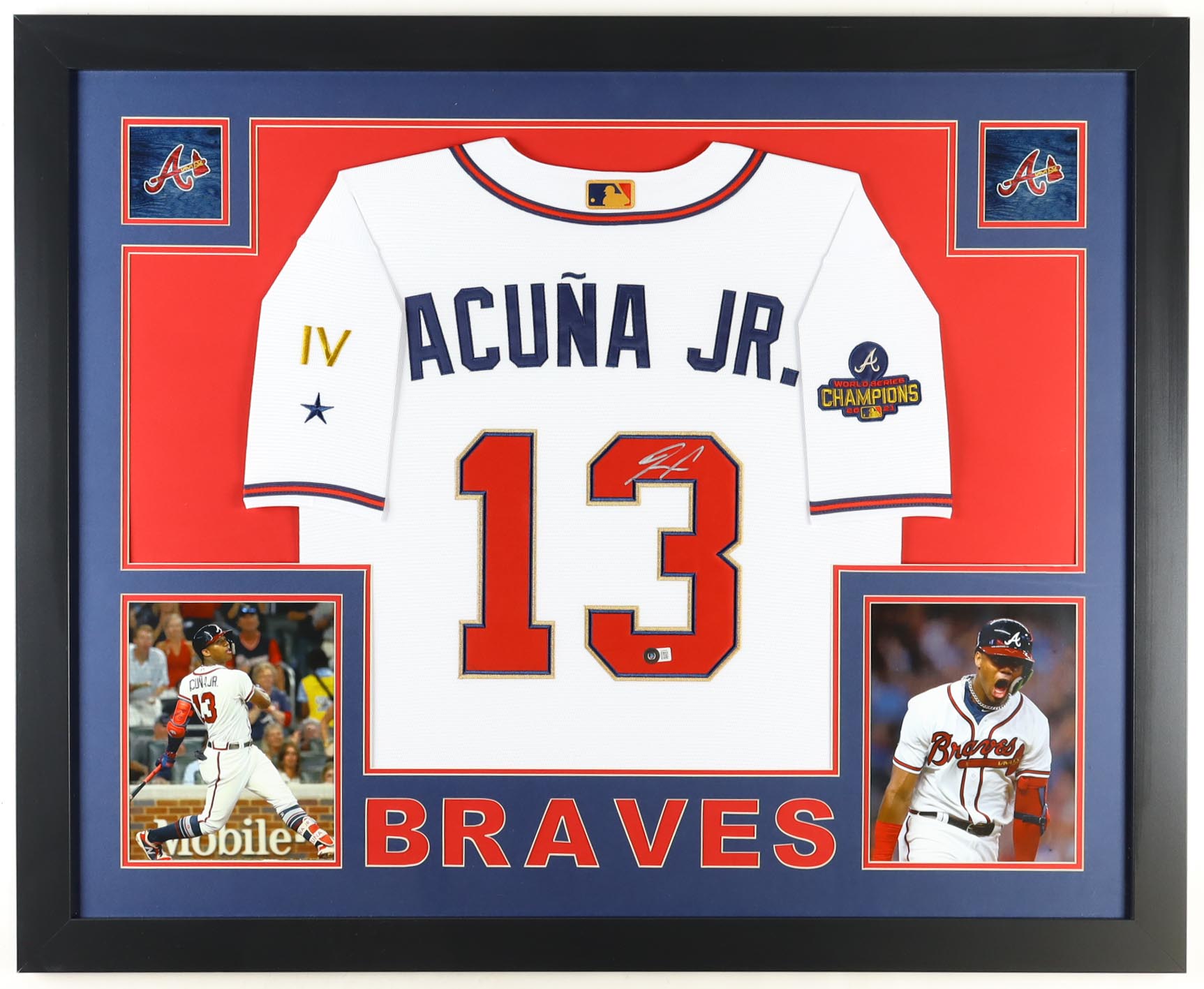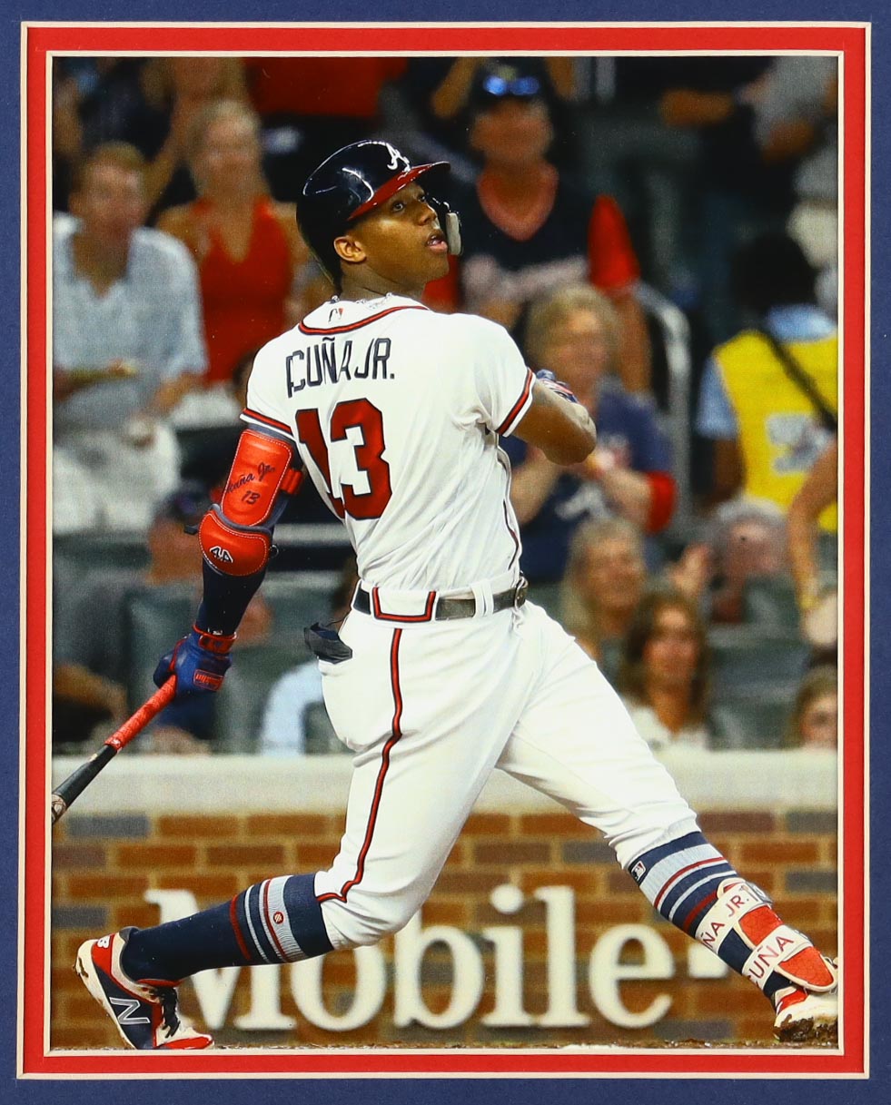 Custom frame measures approximately 35" x 43" in size and features a jersey hand-signed by Ronald Acuna Jr.