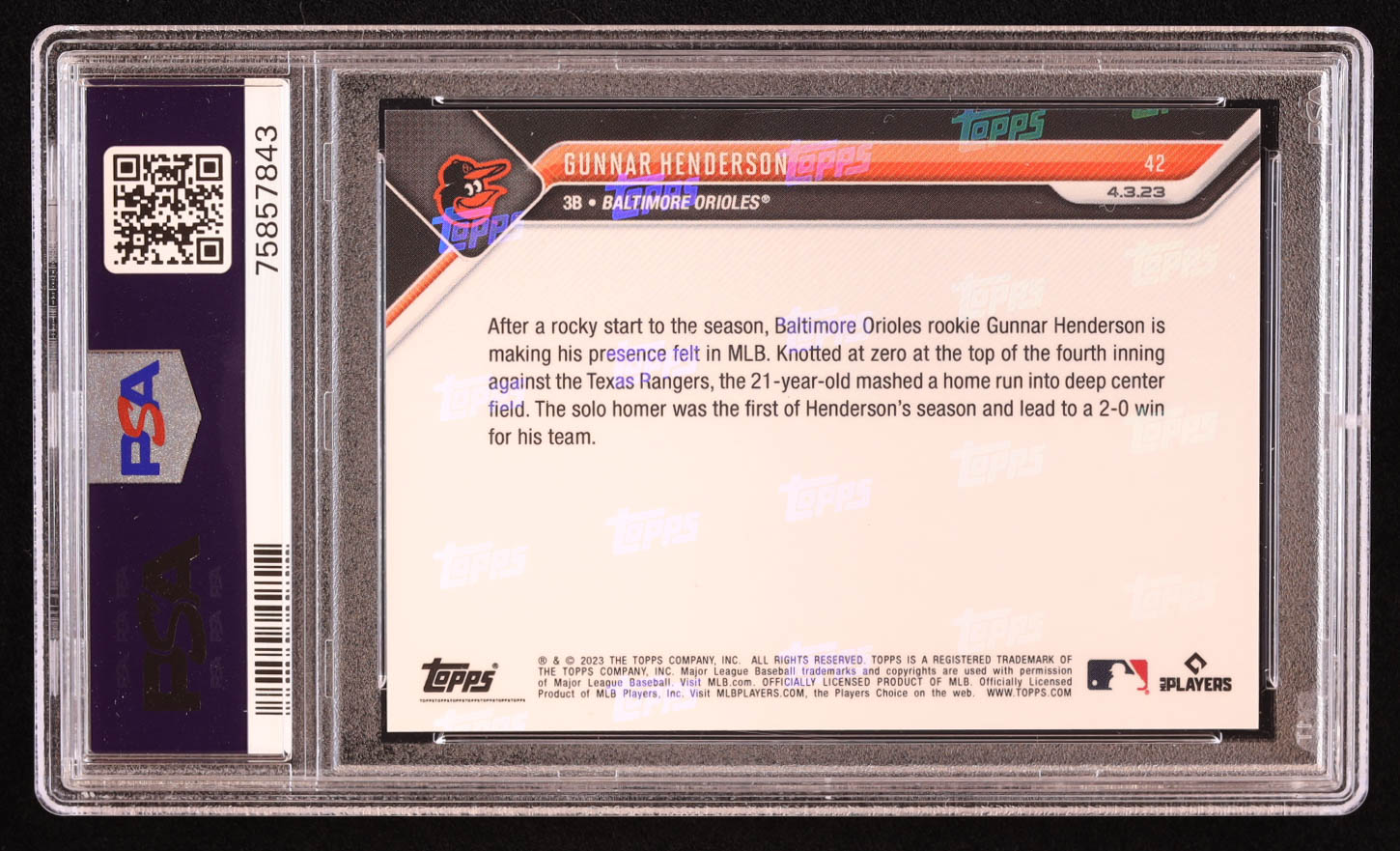 Gunnar Henderson 2023 Topps Now #42 RC (PSA 10)