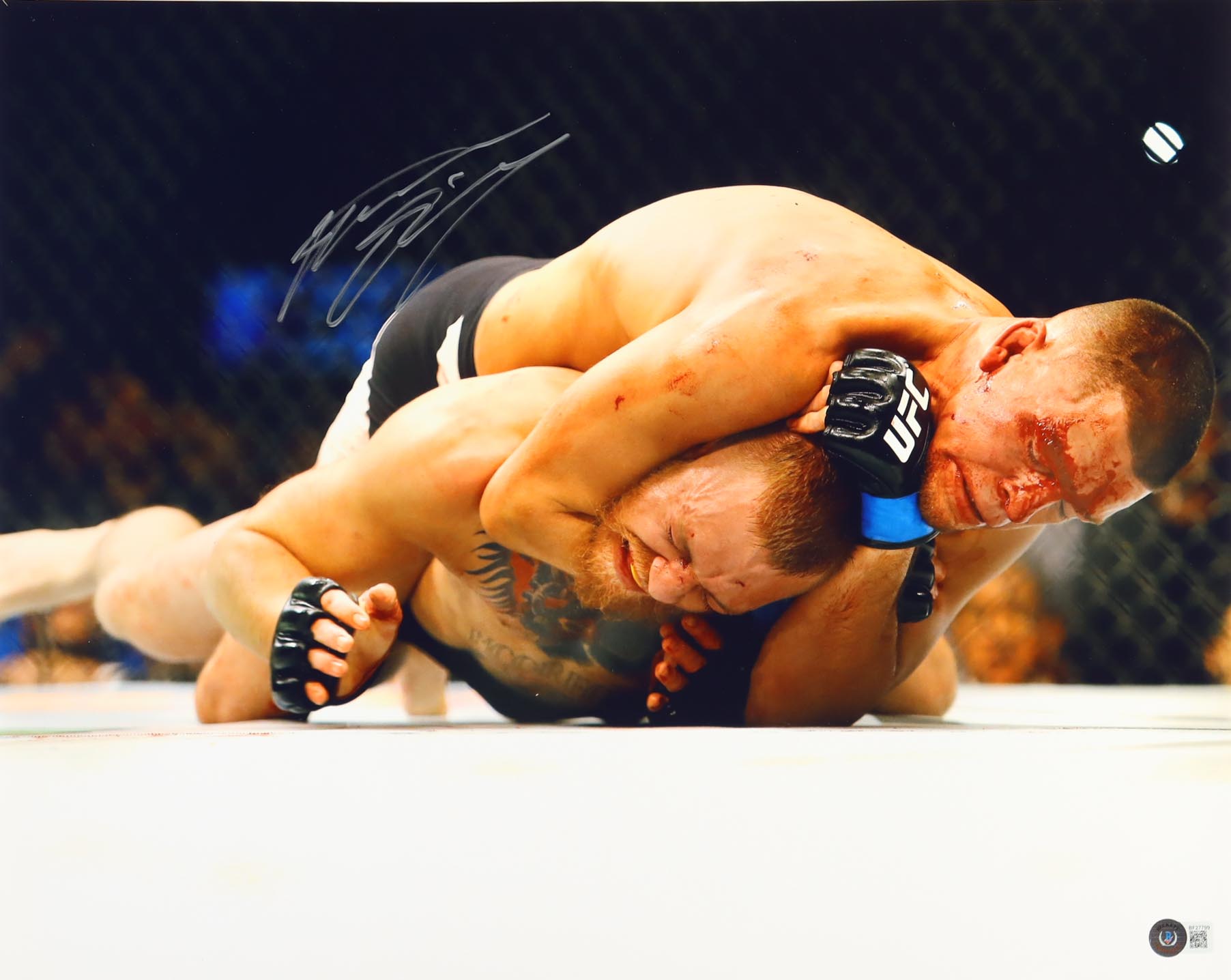 Photo measures 16" x 20" in size and has been hand-signed by Nate Diaz.