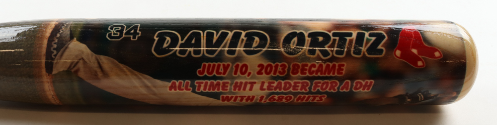 David Ortiz Coopersburg commemorative bat for "July 10, 2013 Became All Time Hit Leader for a DH with 1,689 Hits" baseball bat. Hand-signed by David Ortiz (Boston Red Sox, HOF). The baseball bat is limited edition numbered #3/213.
