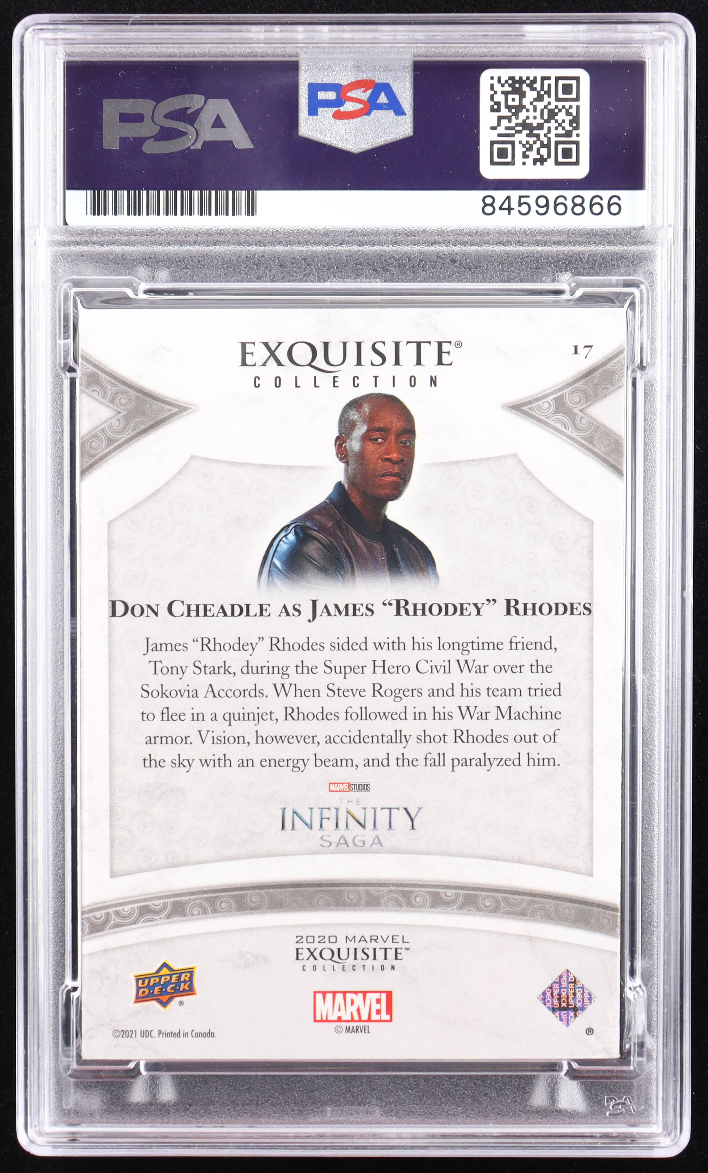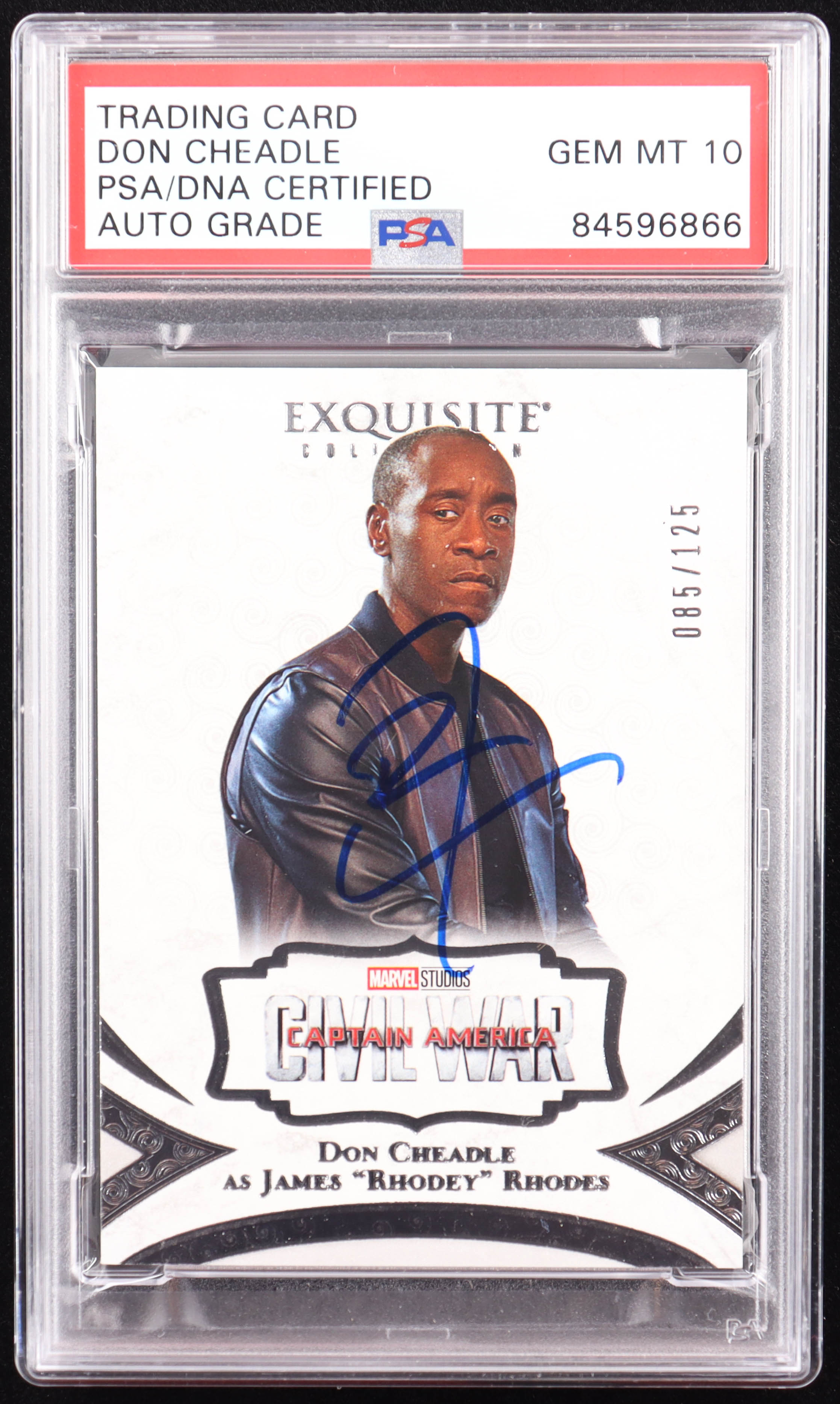 Don Cheadle Signed 2021 UD Marvel Exquisite Captain America Civil War #17 #085/125 James "Rodney" Rhodes (PSA)