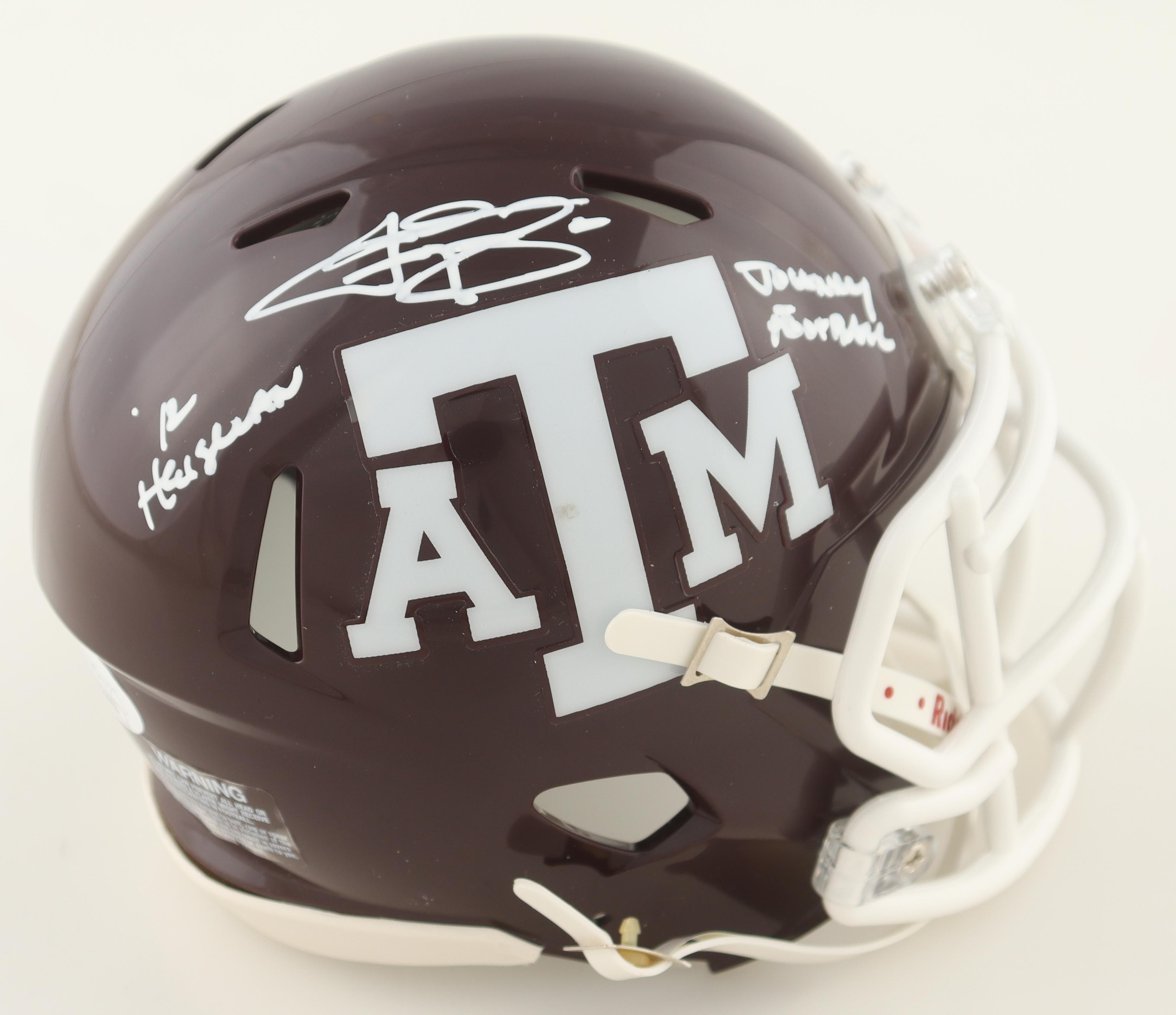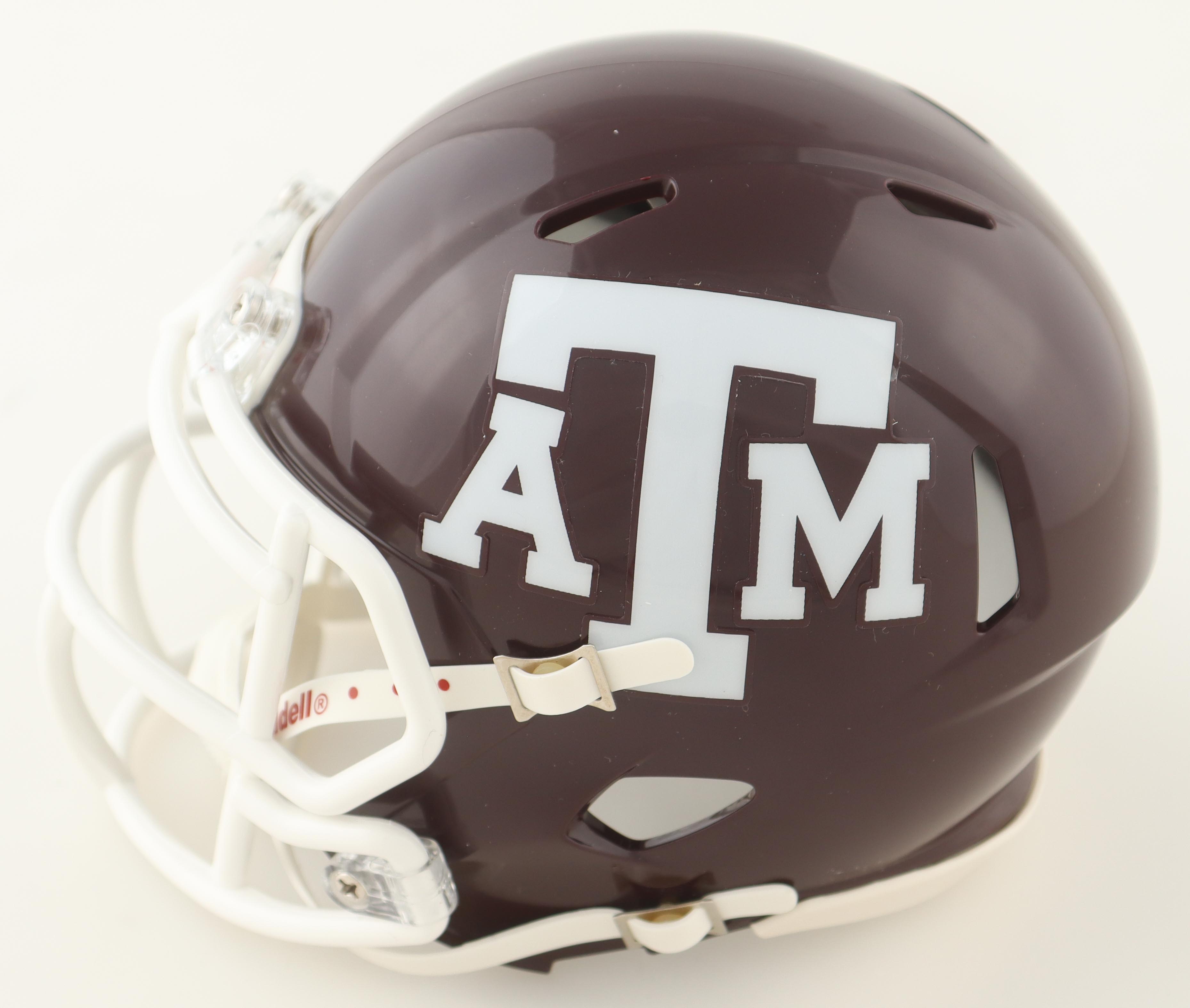 Riddell Texas A&M Aggies Speed mini helmet. Hand-signed and inscribed by Johnny Manziel.