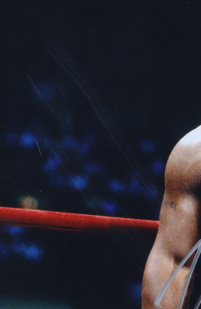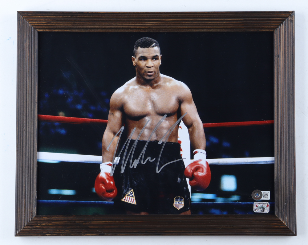 Custom frame measures approximately 13" x 16" in size and features a photo that has been hand-signed by Mike Tyson (HOF). Please note there are scuffs to the glass, see photos for details.