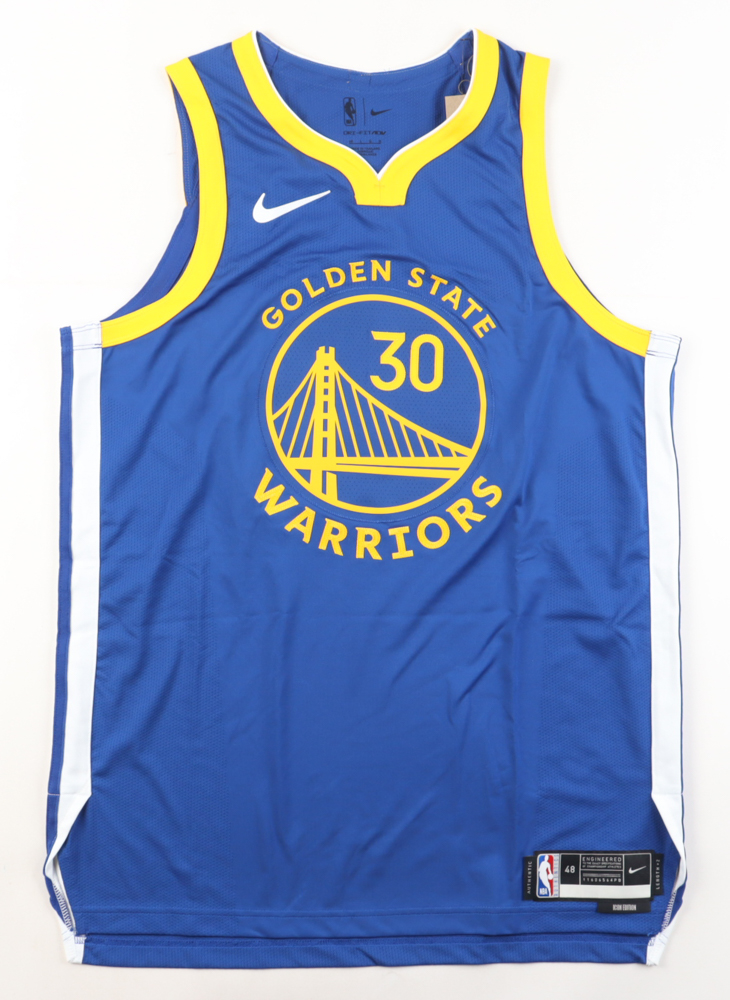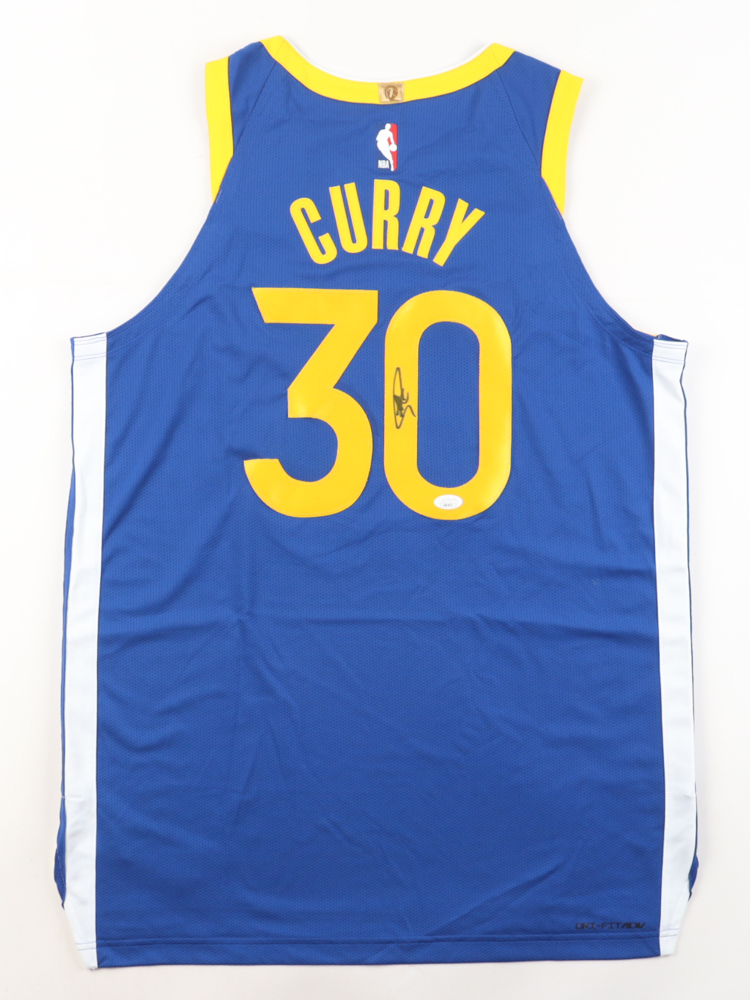 Nike jersey with everything sewn on, size 48. Hand-signed by Stephen Curry (Golden State Warriors).
