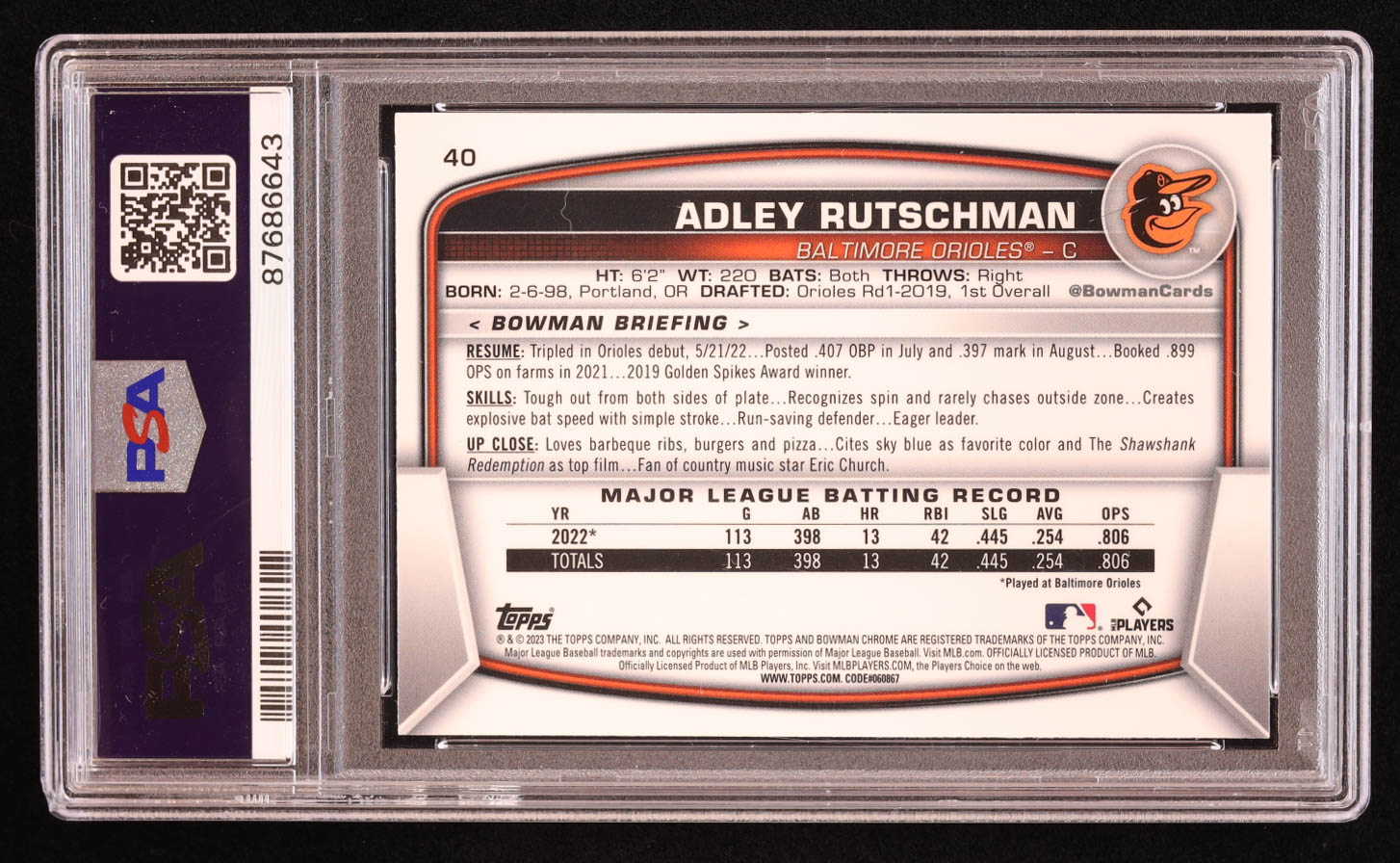 Adley Rutschman 2023 Bowman Chrome Mega Box #40 RC (PSA 10)