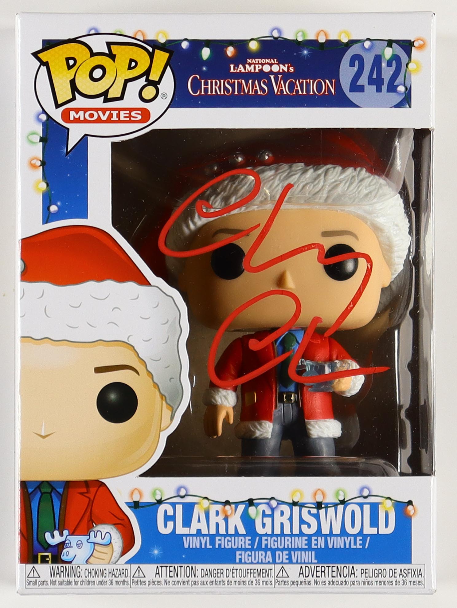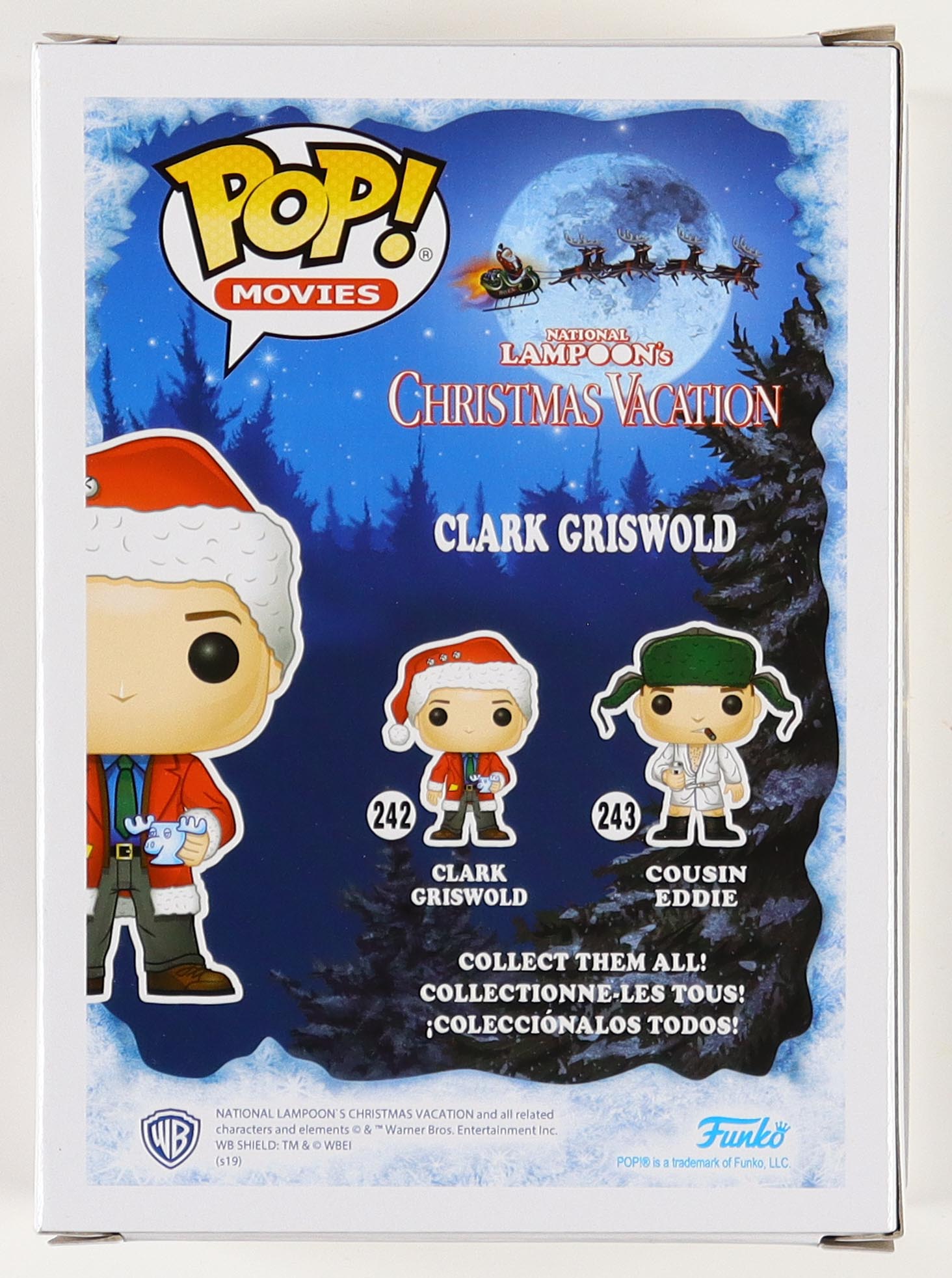Funko Pop! vinyl figure measures approximately 4" tall and has been hand-signed on the packaging by Chevy Chase (Clark W. Griswold).