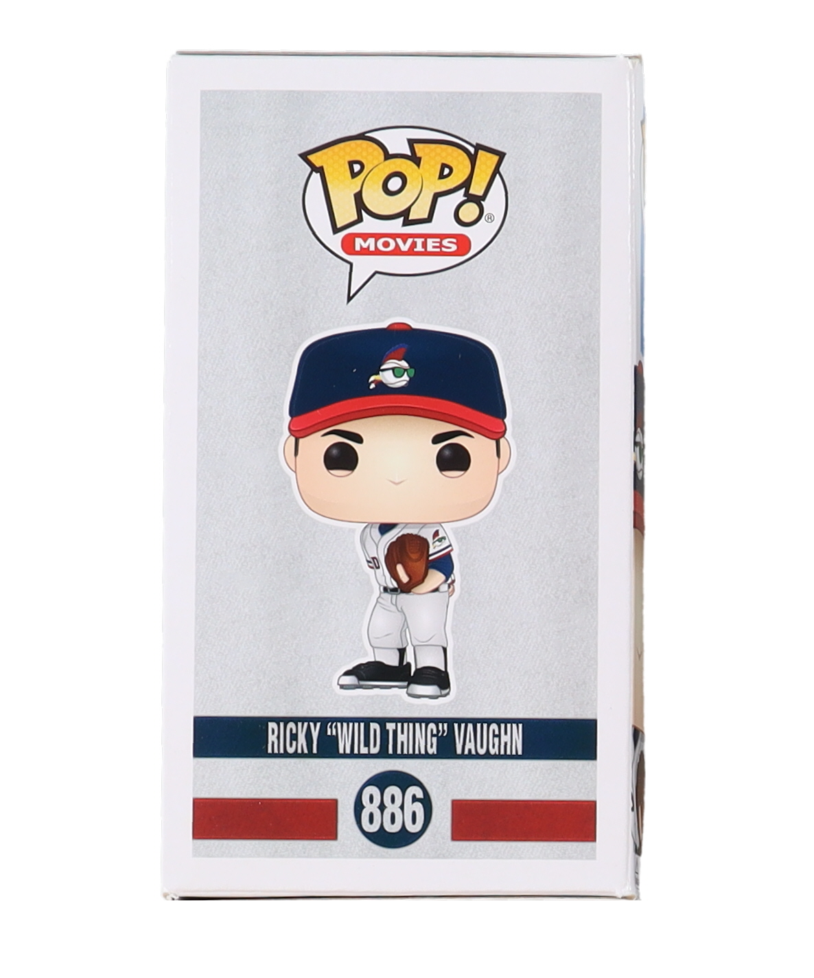 Vinyl figure measures approximately 4" tall. Hand-signed on the packaging by Charlie Sheen (Ricky 'Wild Thing' Vaughn).