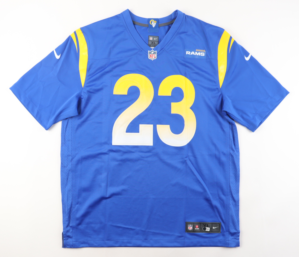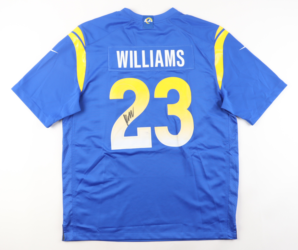 Nike jersey with everything printed on, size XL. Hand-signed by Kyren Williams (Los Angeles Rams). Please note, there are ink stains on the front and reverse numbers.