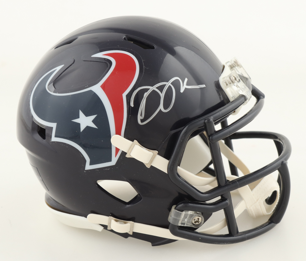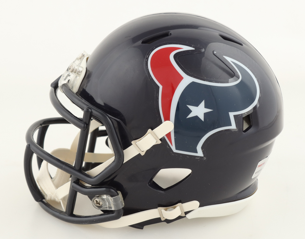 Riddell Houston Texans Speed mini helmet. Hand-signed by Davis Mills.