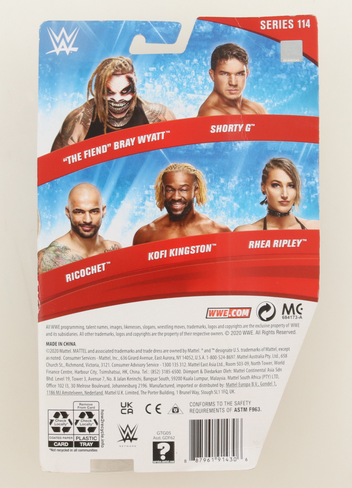 Mattel WWE Wrestlemania action figure. Hand-signed on the original packaging by Bray Wyatt (D. 2023).