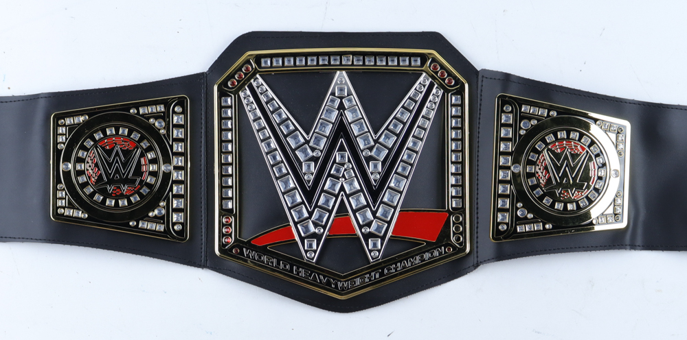 Toy replica WWE Heavyweight Wrestling Champion wrestling belt (plastic) measures approximately 38" in length and has been hand-signed by Michael 'Mick' Foley (HOF).