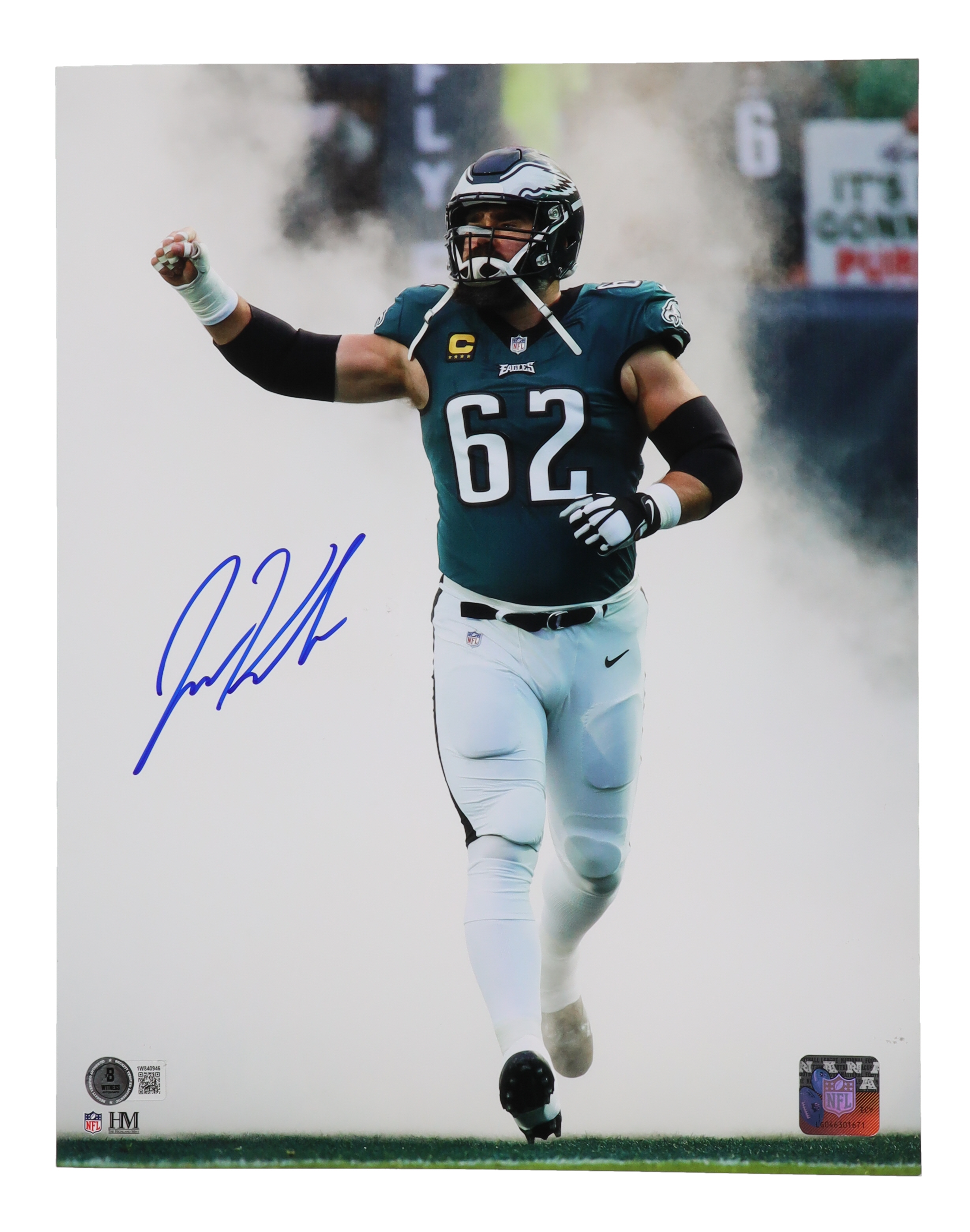 Photo measures 11" x 14" in size and has been hand-signed by Jason Kelce (Philadelphia Eagles).