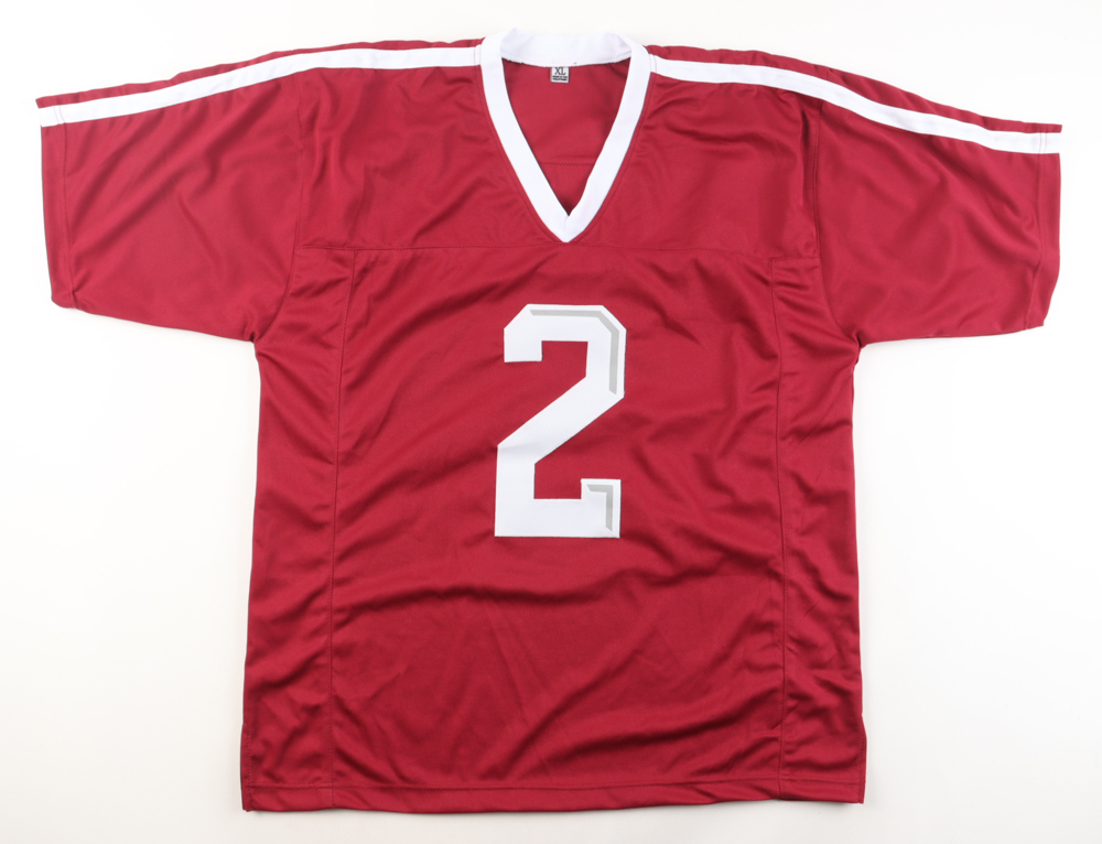 Custom jersey. Everything is sewn on, size XL. Hand-signed and inscribed by Johnny Manziel. Please note, glue is visible through the reverse number.