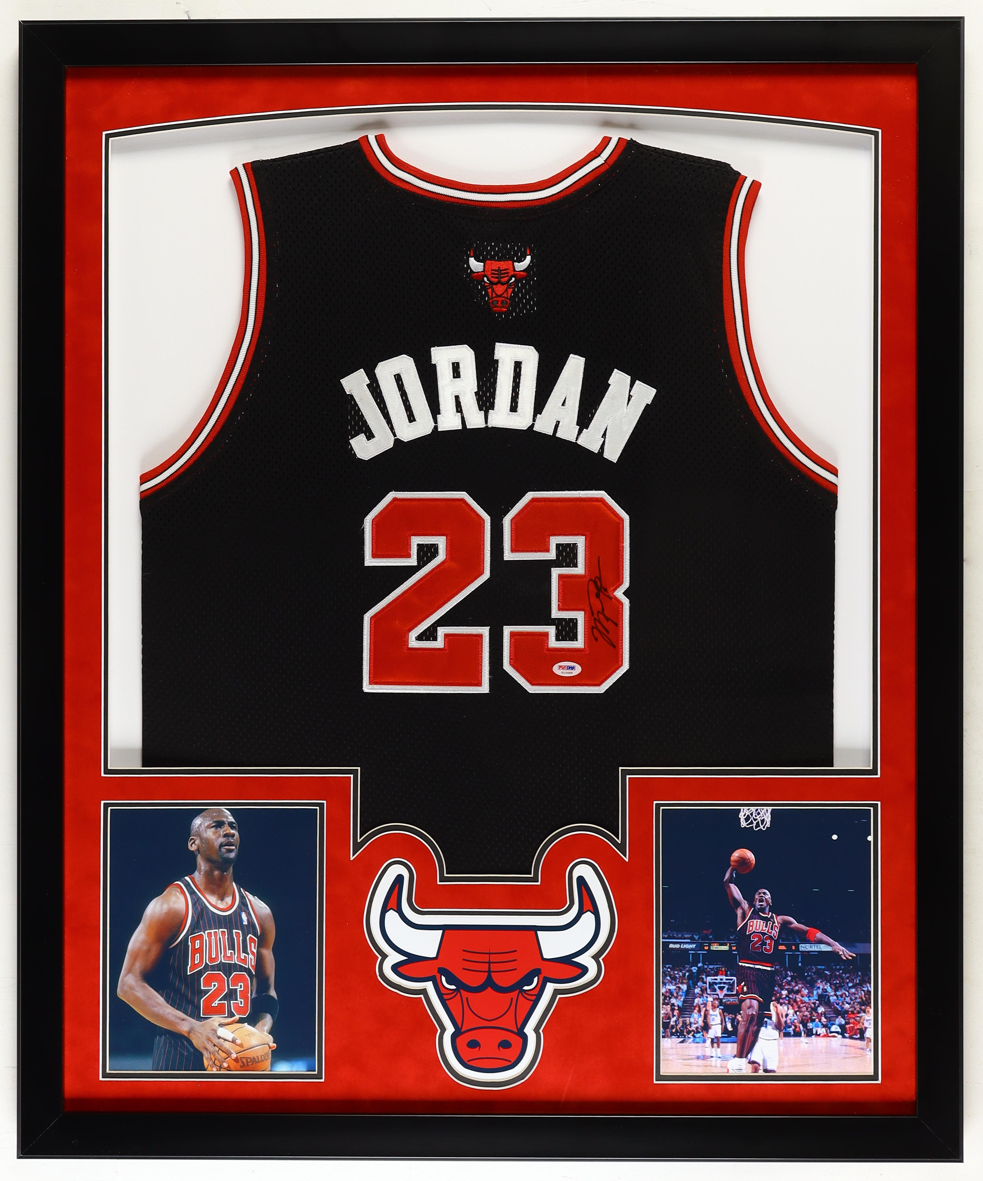 Michael Jordan Signed Bulls Custom Framed Jersey with LED Display (PSA)
