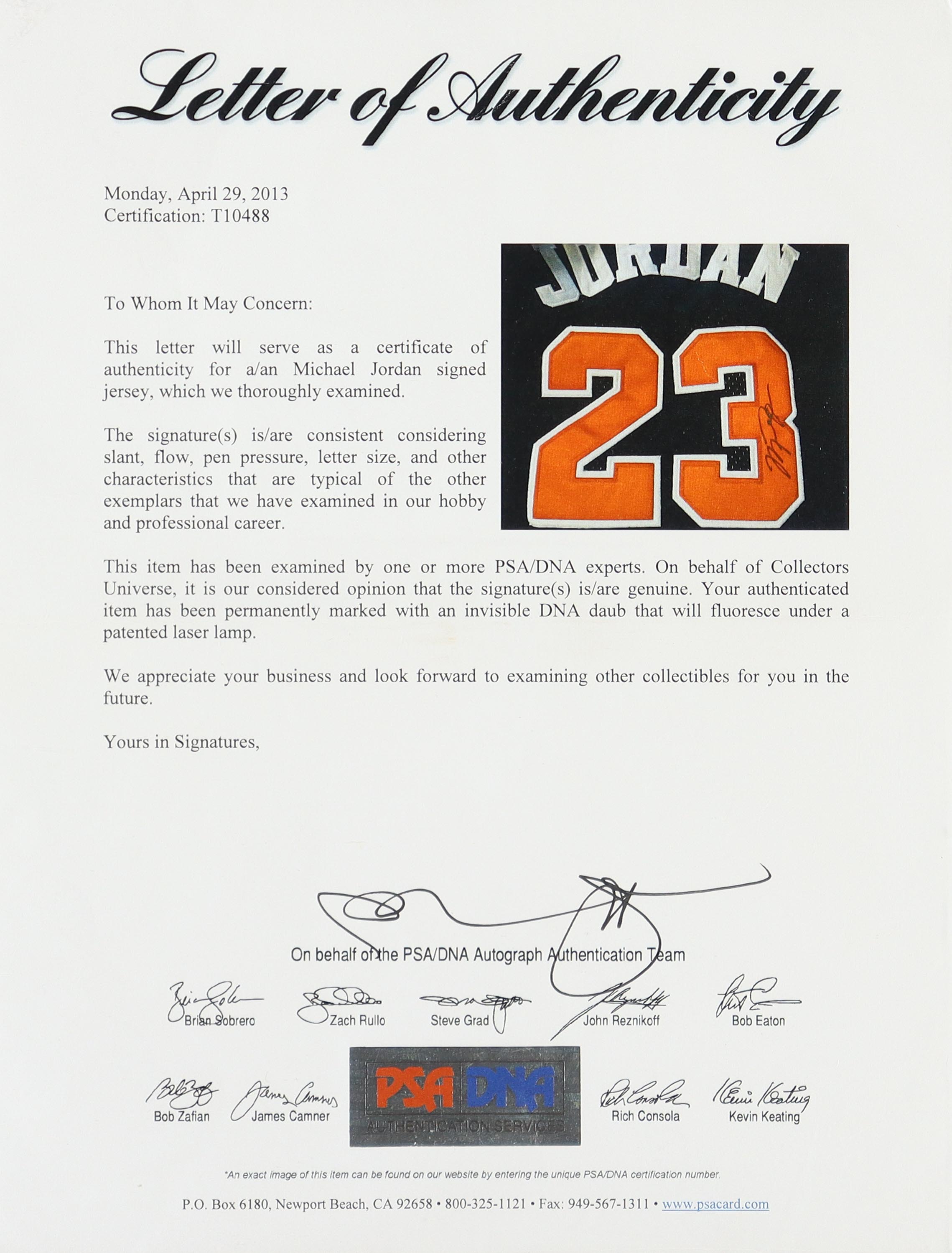 The autograph includes an official PSA/DNA hologram and matching LOA for authenticity purposes.