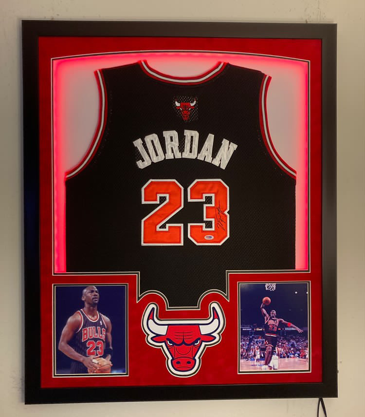 Custom LED display measures approximately 32.5" x 39.5" in size and features a jersey that has been hand-signed by Chicago Bulls legend, Michael Jordan!