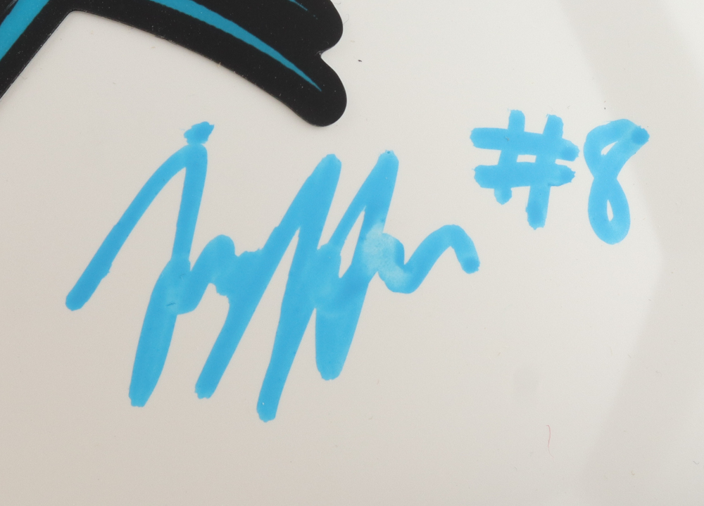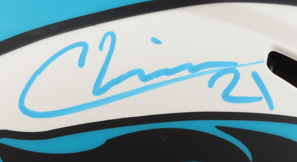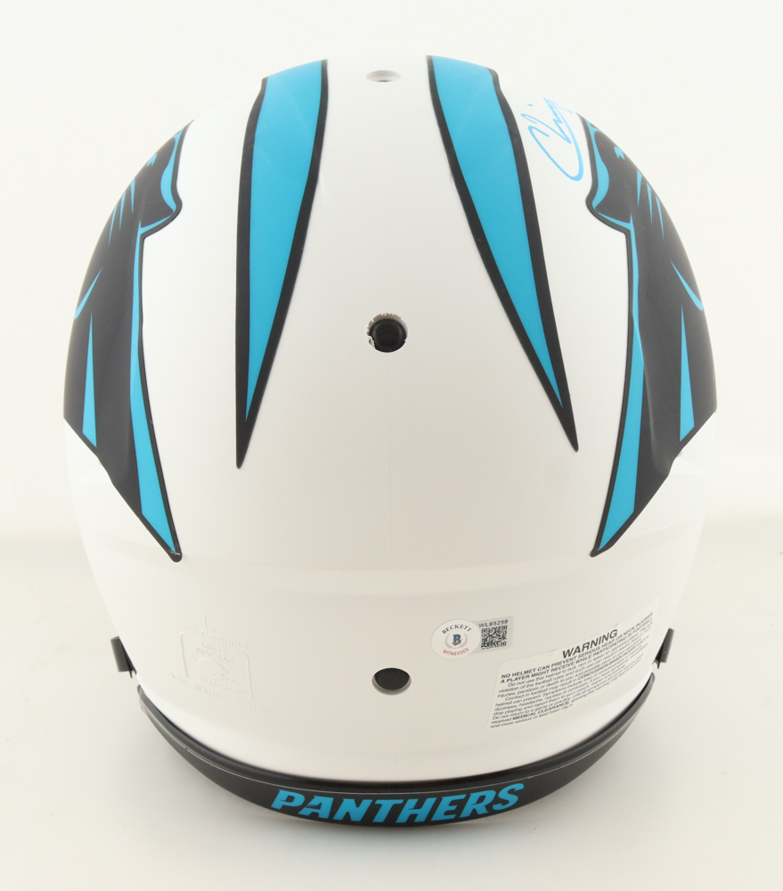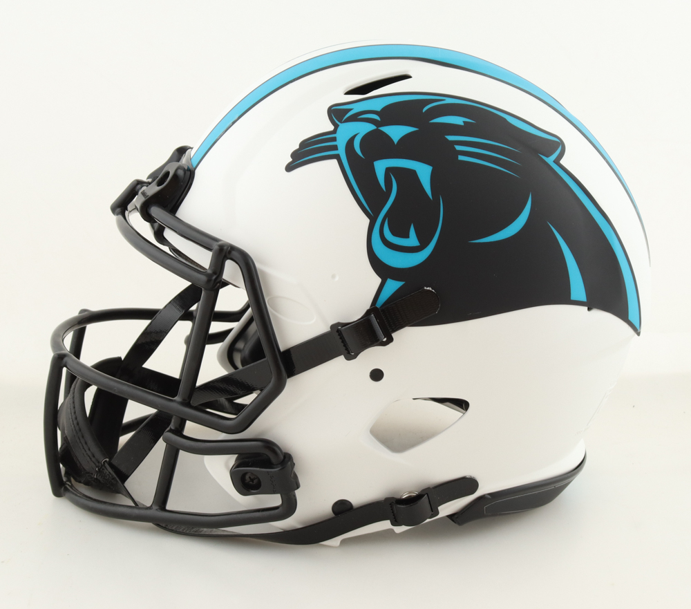 Riddell Carolina Panthers full-size authentic on-field Lunar Eclipse Alternate Speed helmet has been hand-signed by Jaycee Horn and Jeremy Chinn.