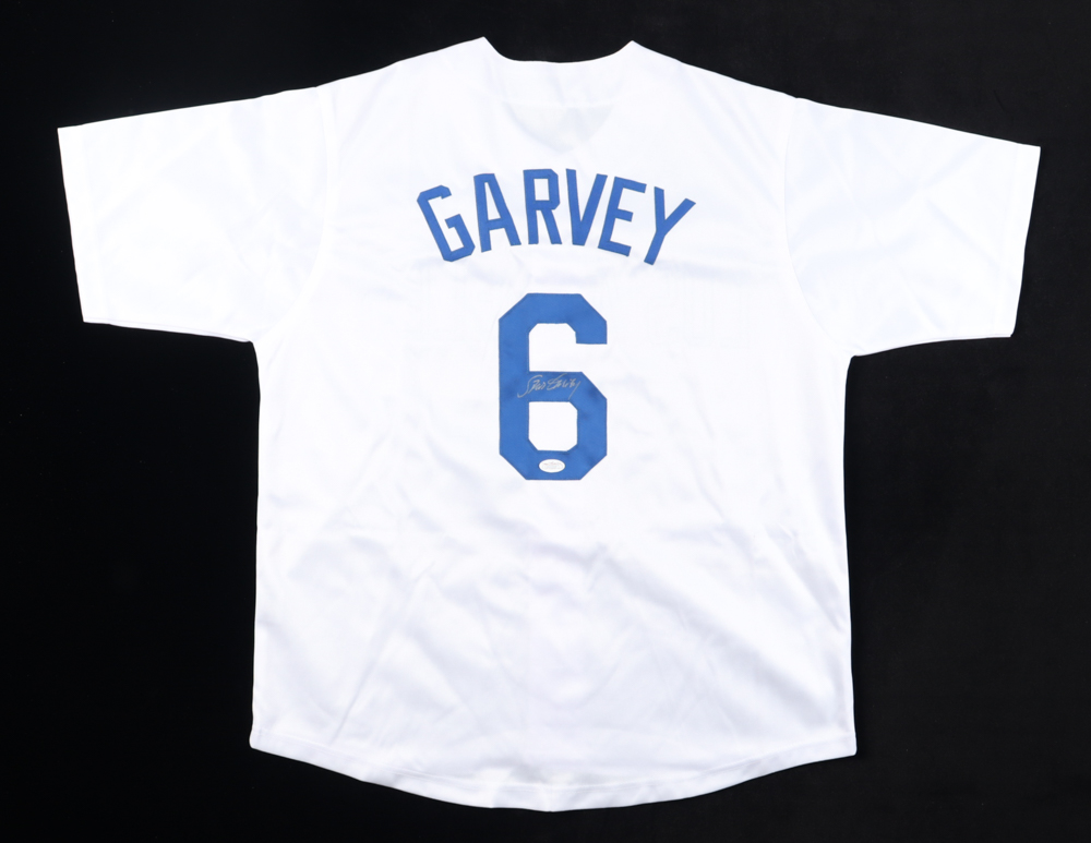 Custom jersey. Everything sewn on, size XL. Hand-signed by Steve Garvey.