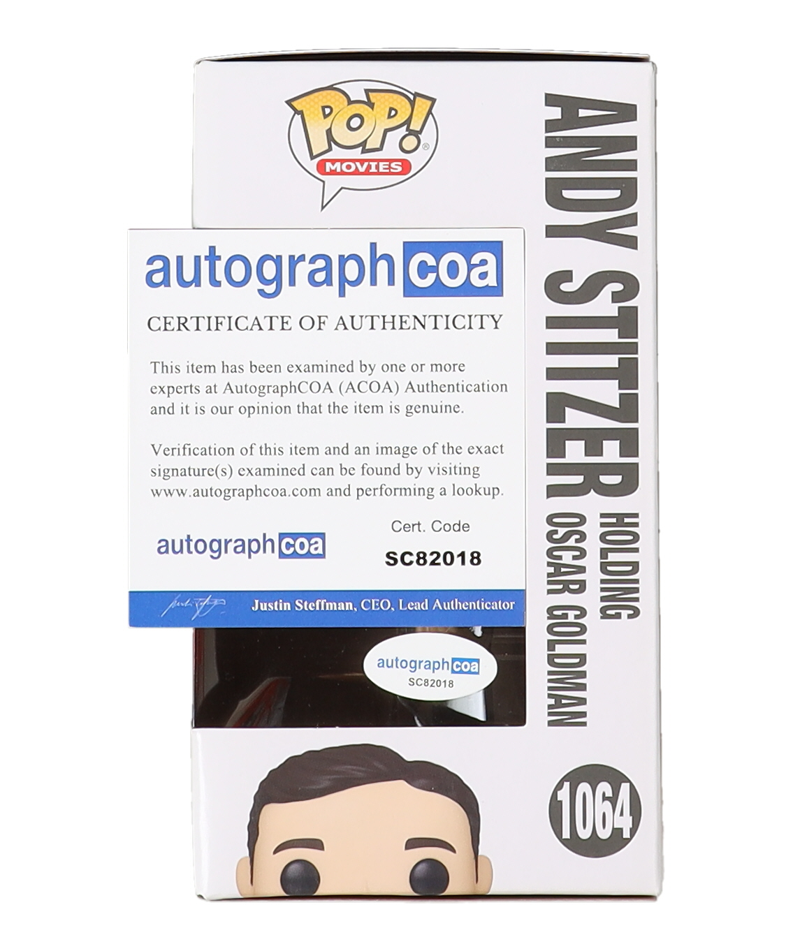 Judd Apatow Signed "The 40 Year Old Virgin" #1064 Andy Stitzer Holding Oscar Goldman Funko Pop! Vinyl Figure (AutographCOA)