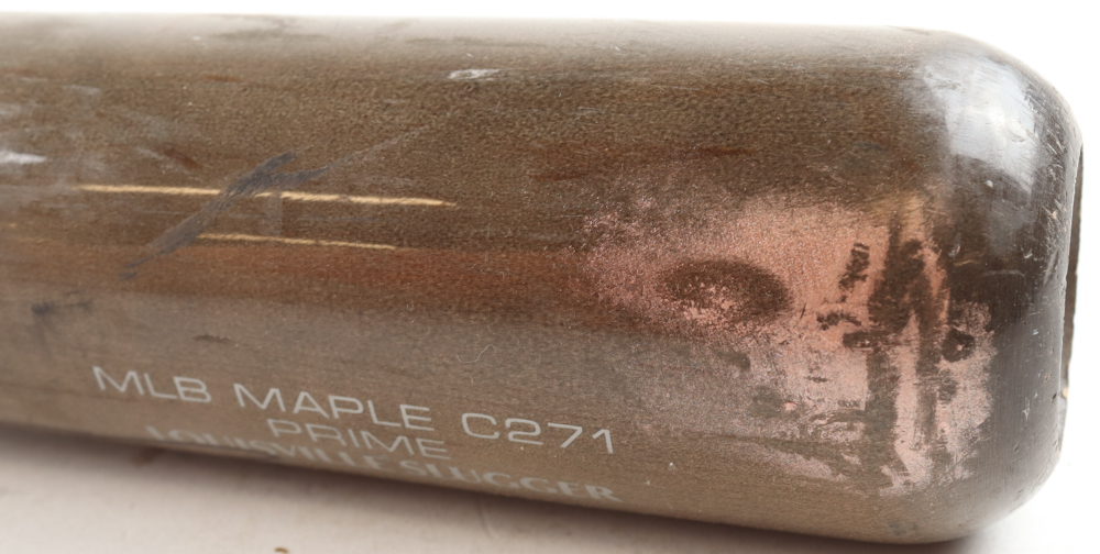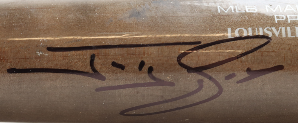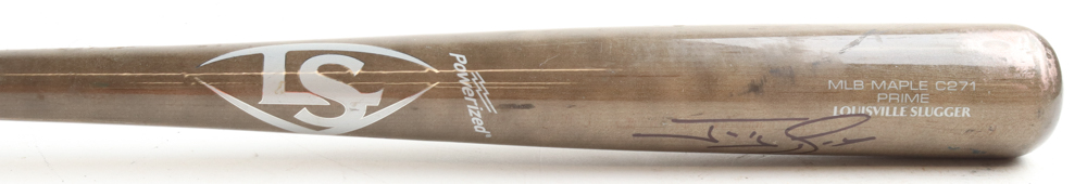 Louisville Slugger Prime baseball bat. Hand-signed by Jonny Gomes (Tampa Bay Rays). Please note, the bat has been game-used and cracked by an unknown player.