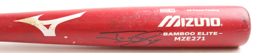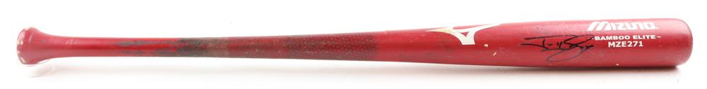 Mizuno Bamboo Elite Baseball Bat has been hand-signed by Jonny Gomes (Tampa Bay Rays). Please note, the bat has been game-used and cracked by an unknown player..