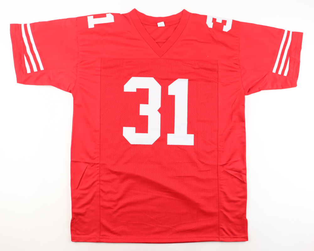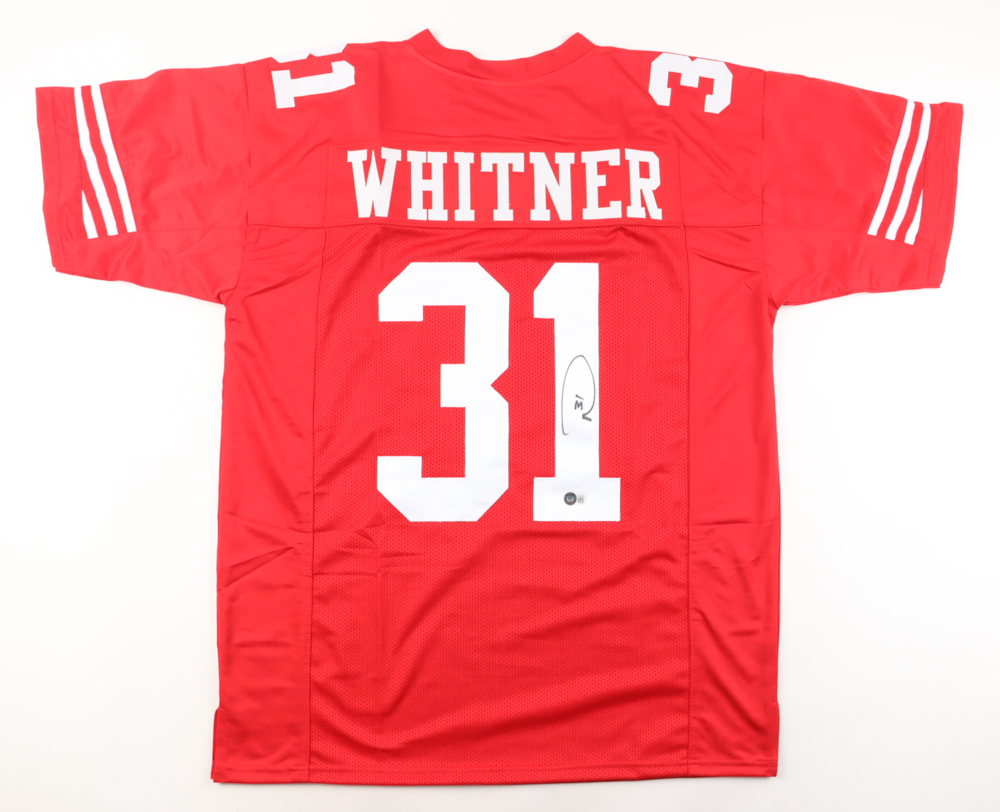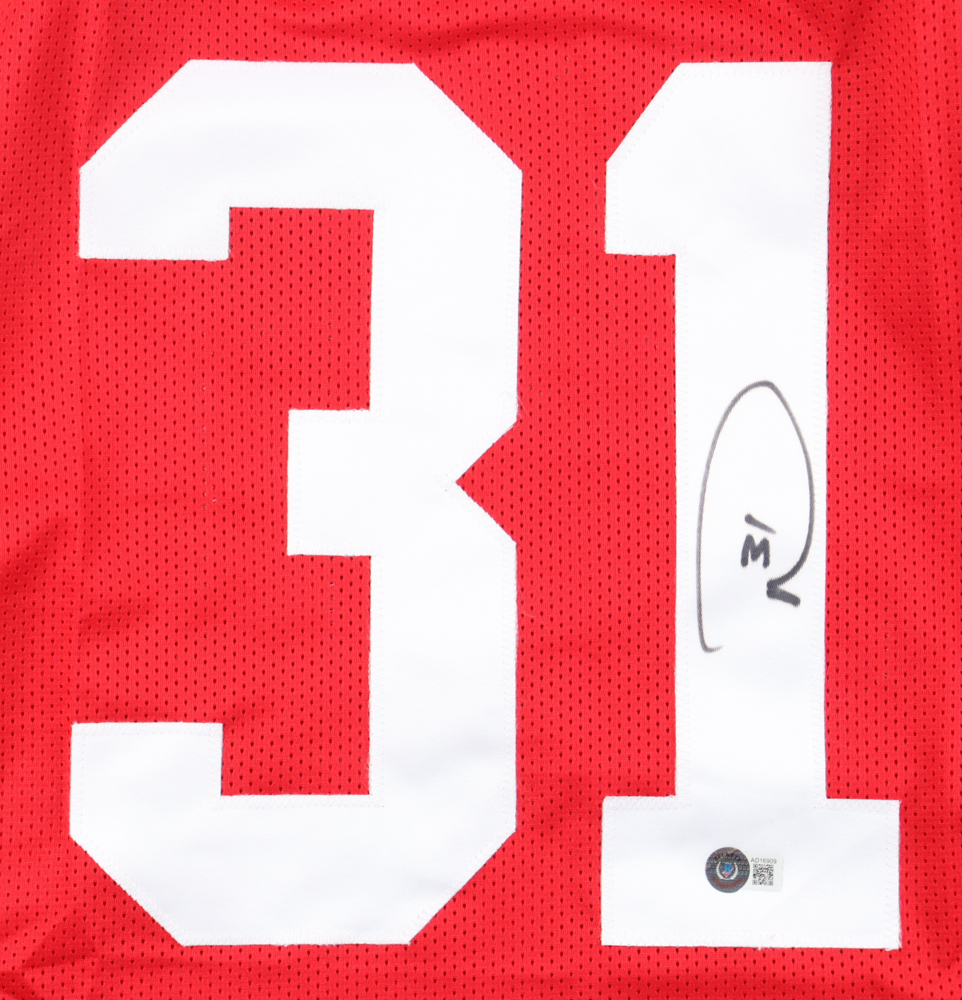 Custom jersey with everything sewn on, size XL. Jersey has been hand-signed by Donte Whitner.