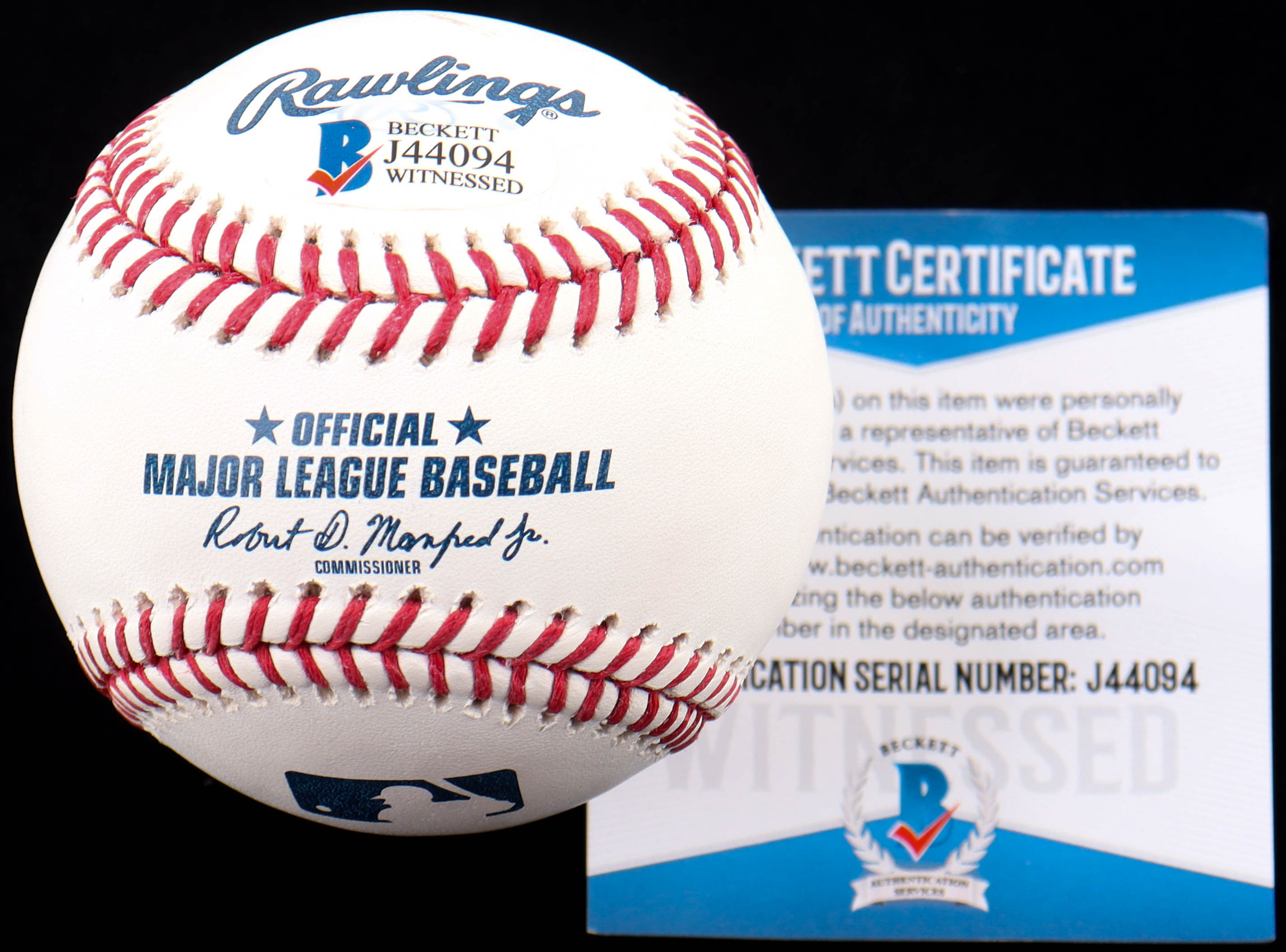 The autograph includes an official Beckett Authentication Services serially-numbered hologram and matching COA for authenticity purposes. The signing of this item was witnessed by Beckett.