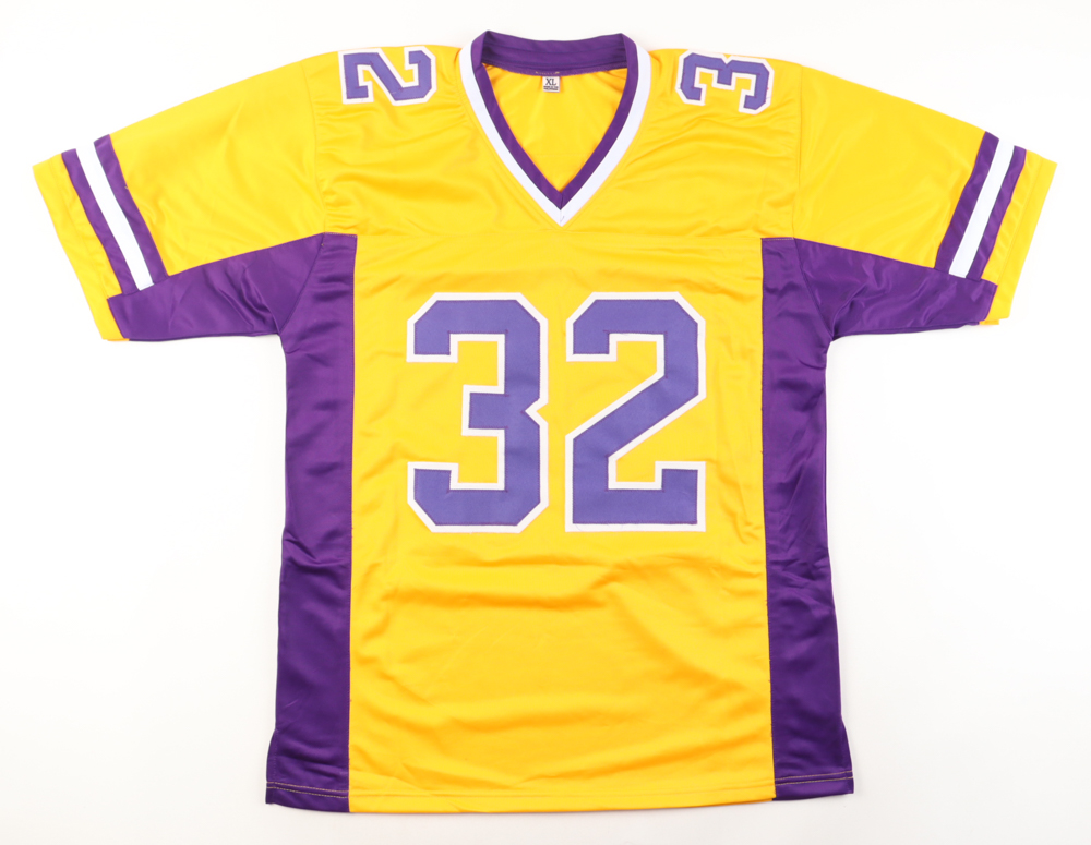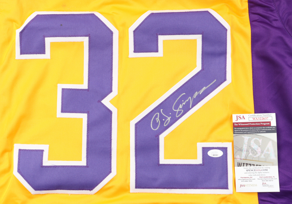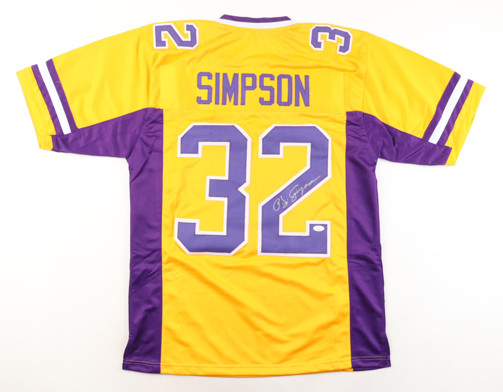 Custom jersey. Everything is sewn on, size XL. Hand-signed by O. J. Simpson (D. 2024, HOF). Please note, there is a stain on and above the reverse number.