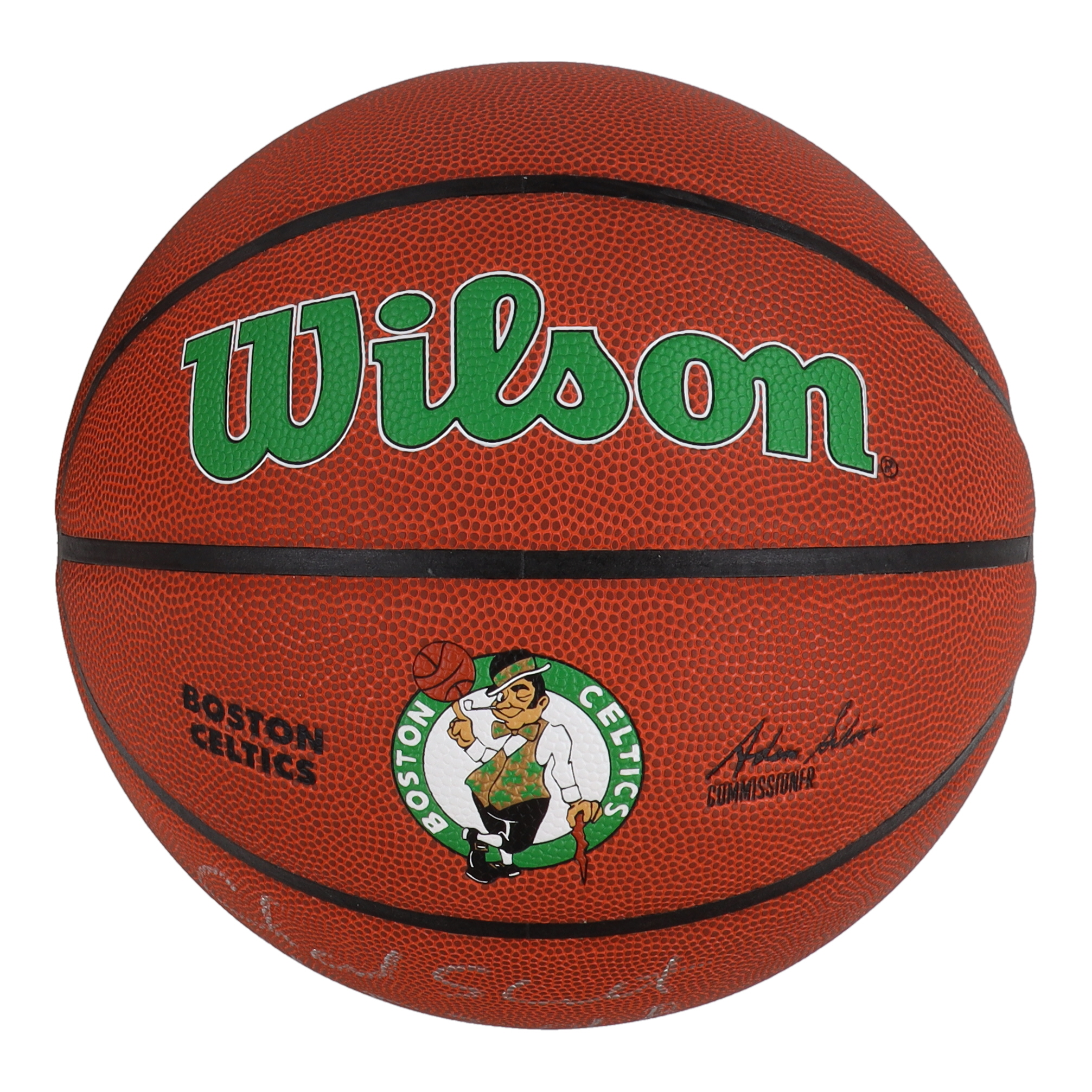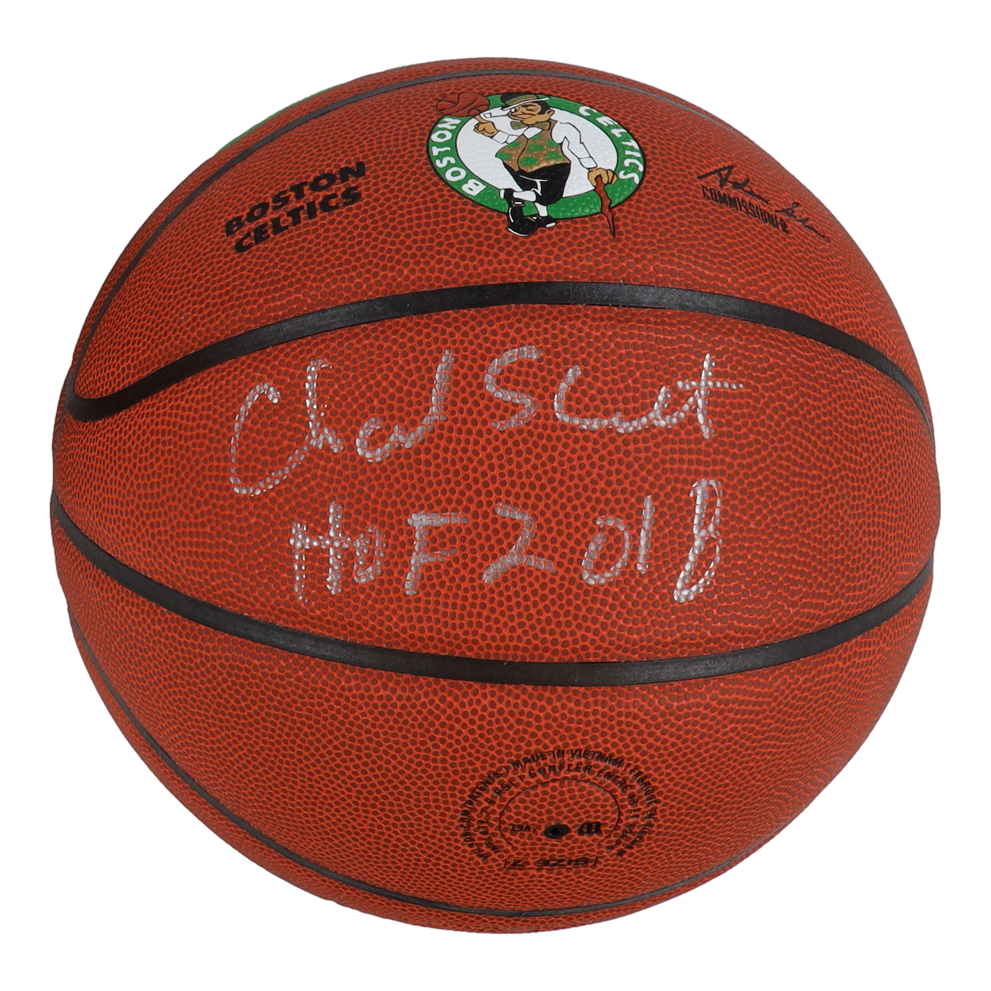 Wilson indoor/outdoor Boston Celtics Logo NBA basketball. Hand-signed and inscribed by Charlie Scott (HOF).