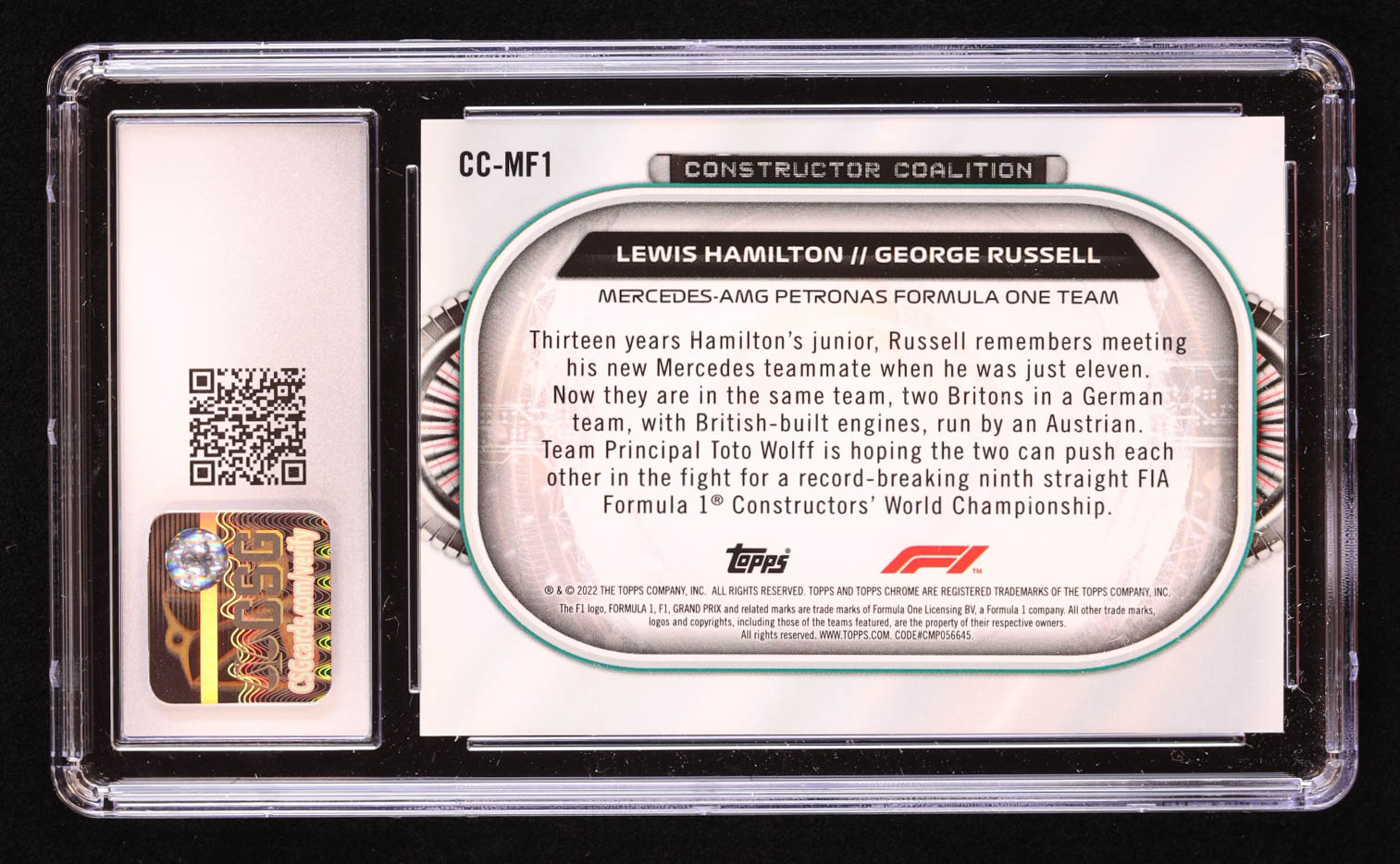 Lewis Hamilton / George Russell 2022 Topps Chrome Formula 1 Constructors Coalition #CCMF1 (CGC 10)