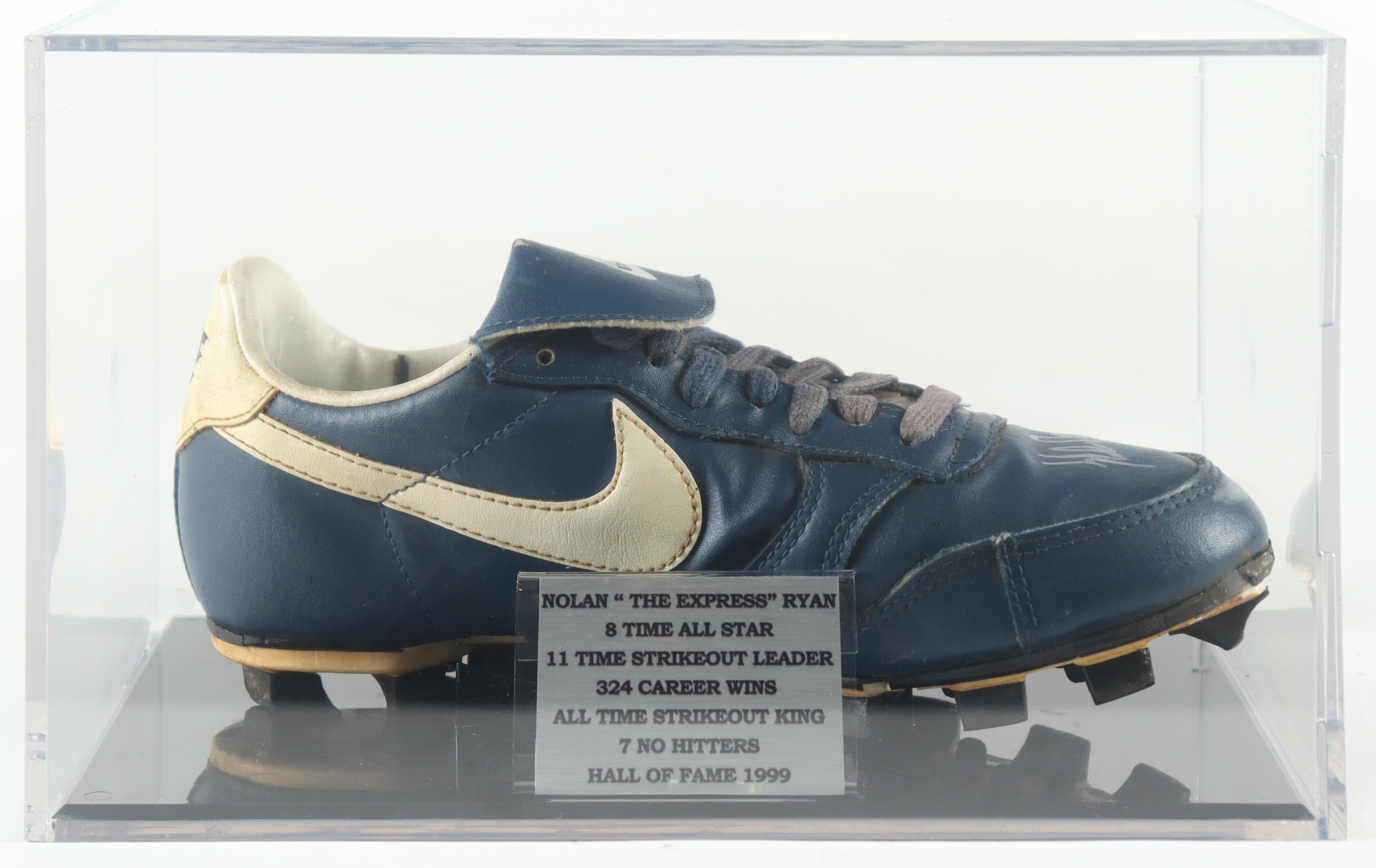 Nike Baseball cleat has been hand-signed by Nolan Ryan (New York Mets, HOF). Display case is included, as shown.