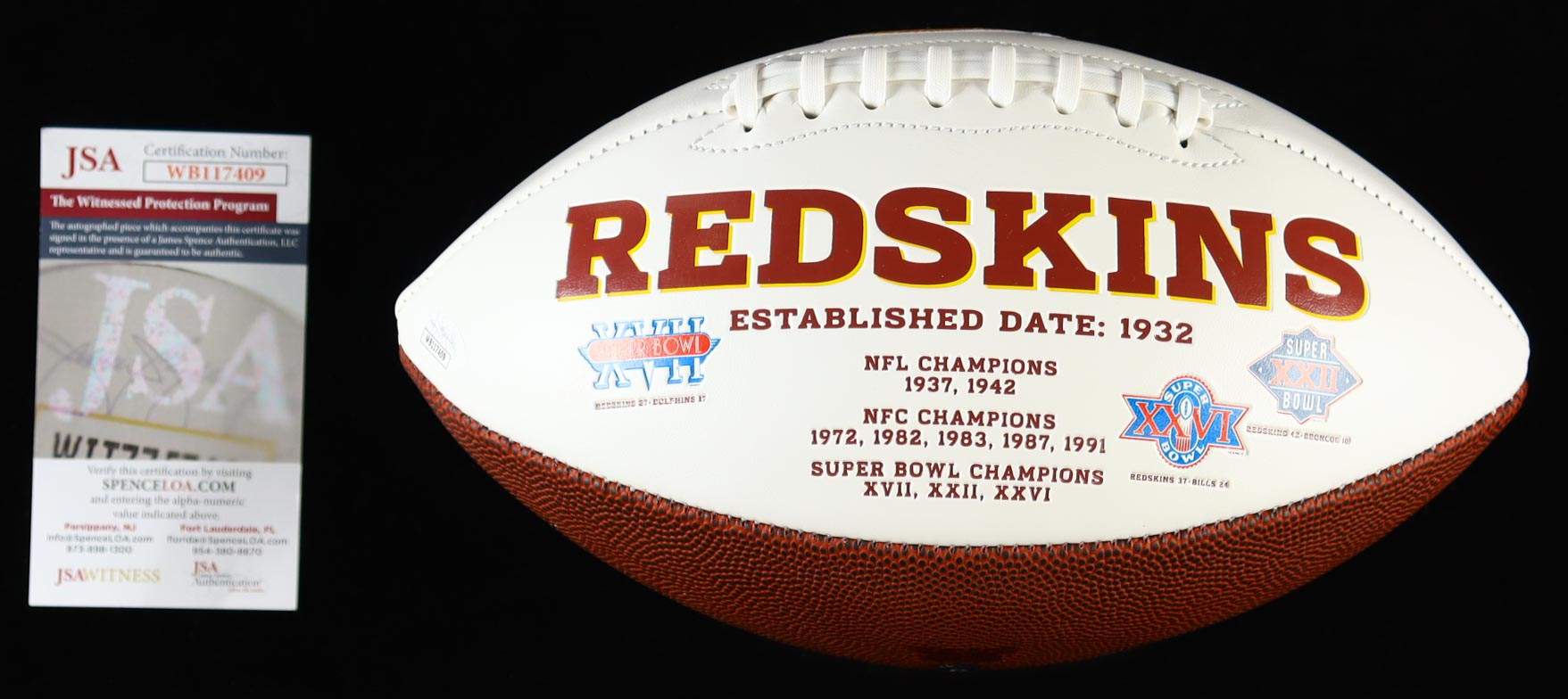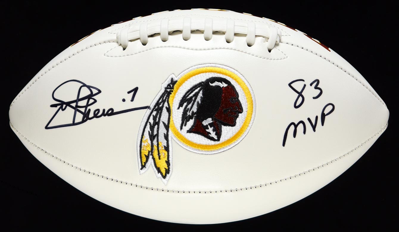 Washington Redskins logo football. Hand-signed and inscribed by Joe Theismann.