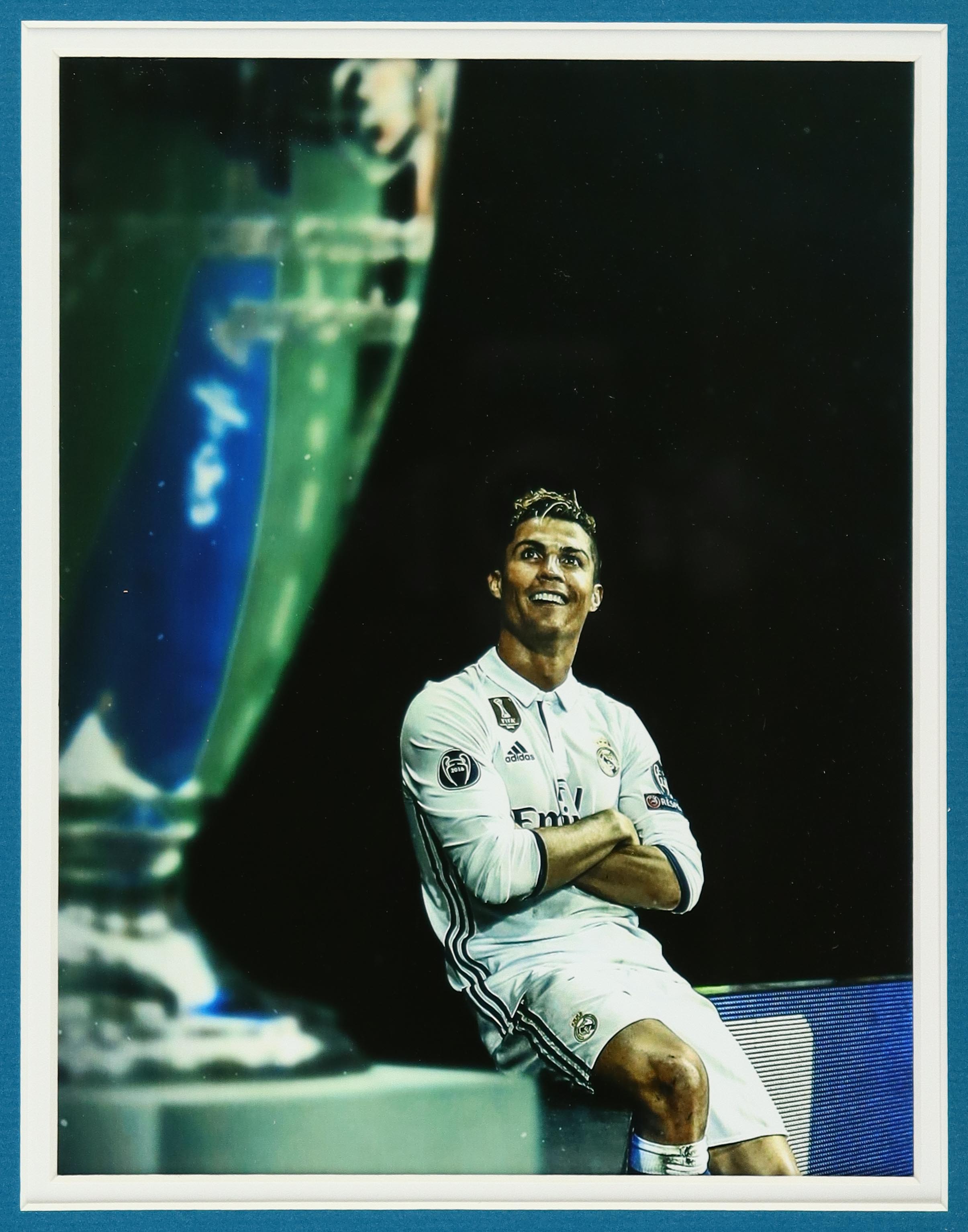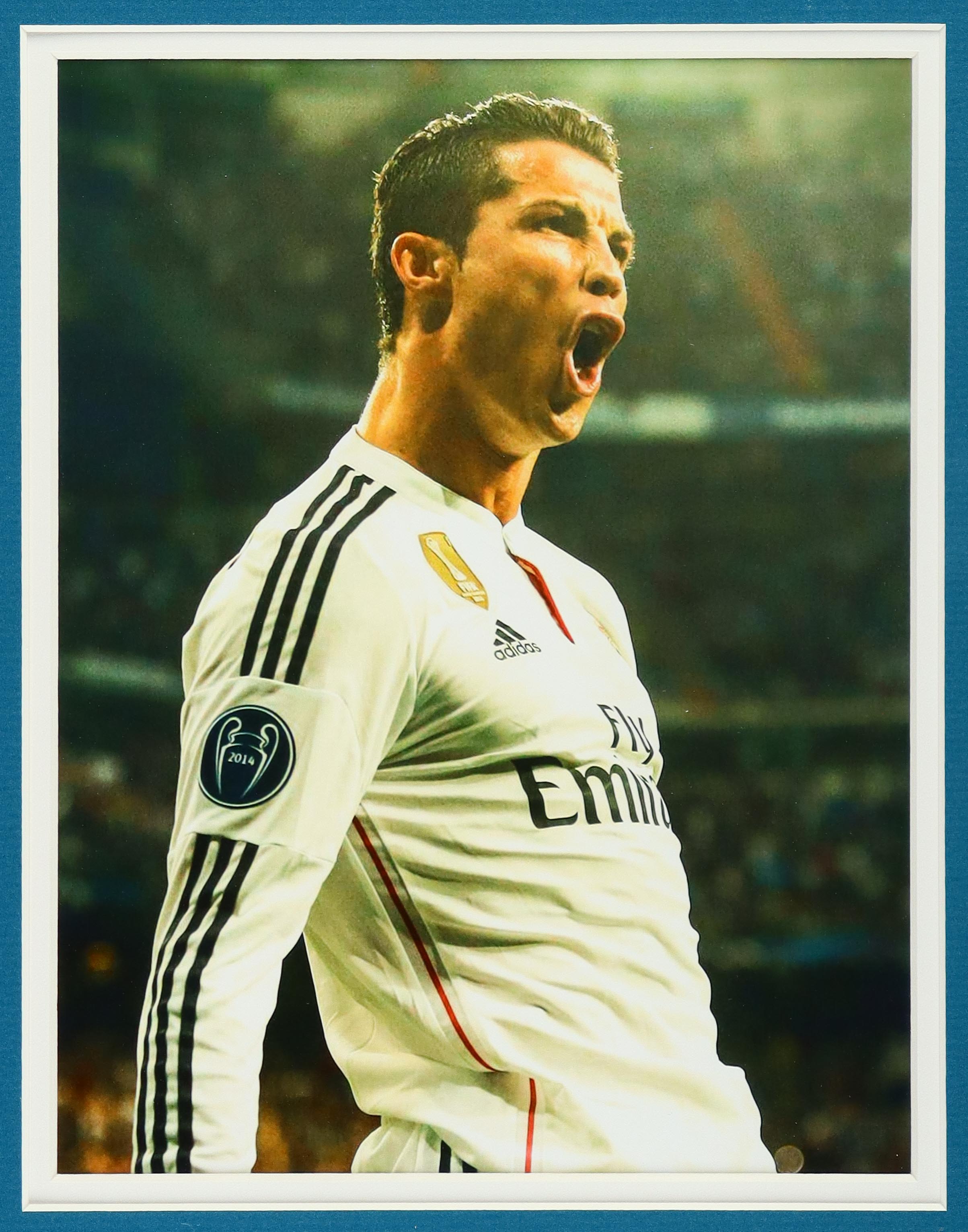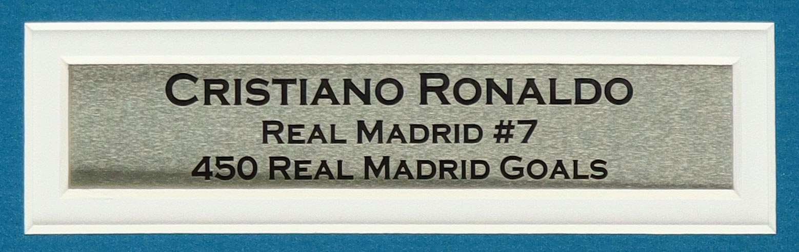 Custom frame measures 34" x 42" in size and features an Adidas jersey that has been hand signed by Cristiano Ronaldo!