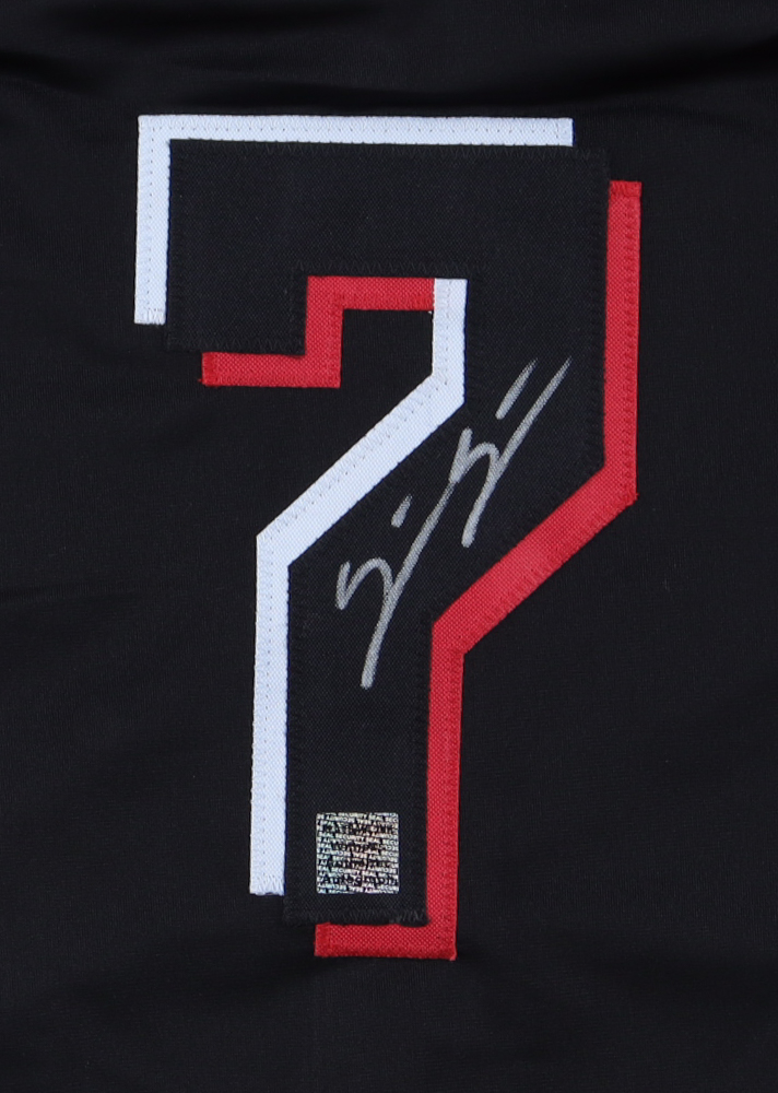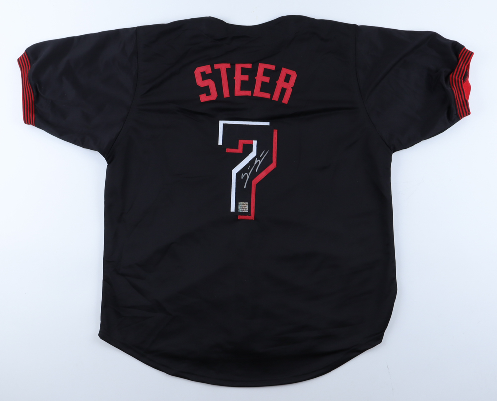 Custom jersey with everything sewn on, size XL. Hand-signed by Spencer Steer.