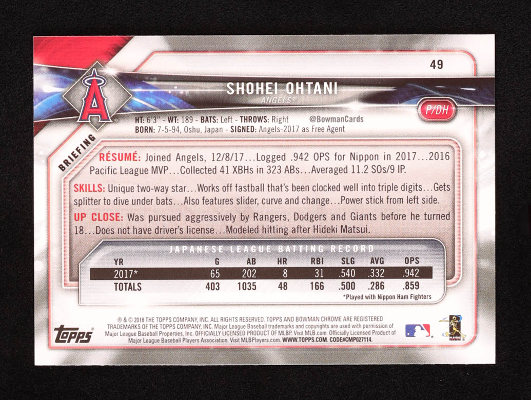 Shohei Ohtani 2018 Bowman #49 RC