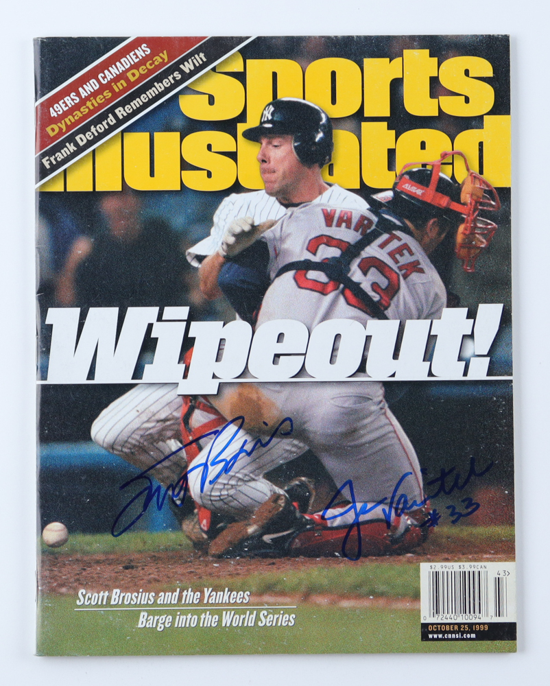 October 25, 1999 issue of Sports Illustrated Magazine has been hand-signed and inscribed by Scott Brosius & Jason Varitek
