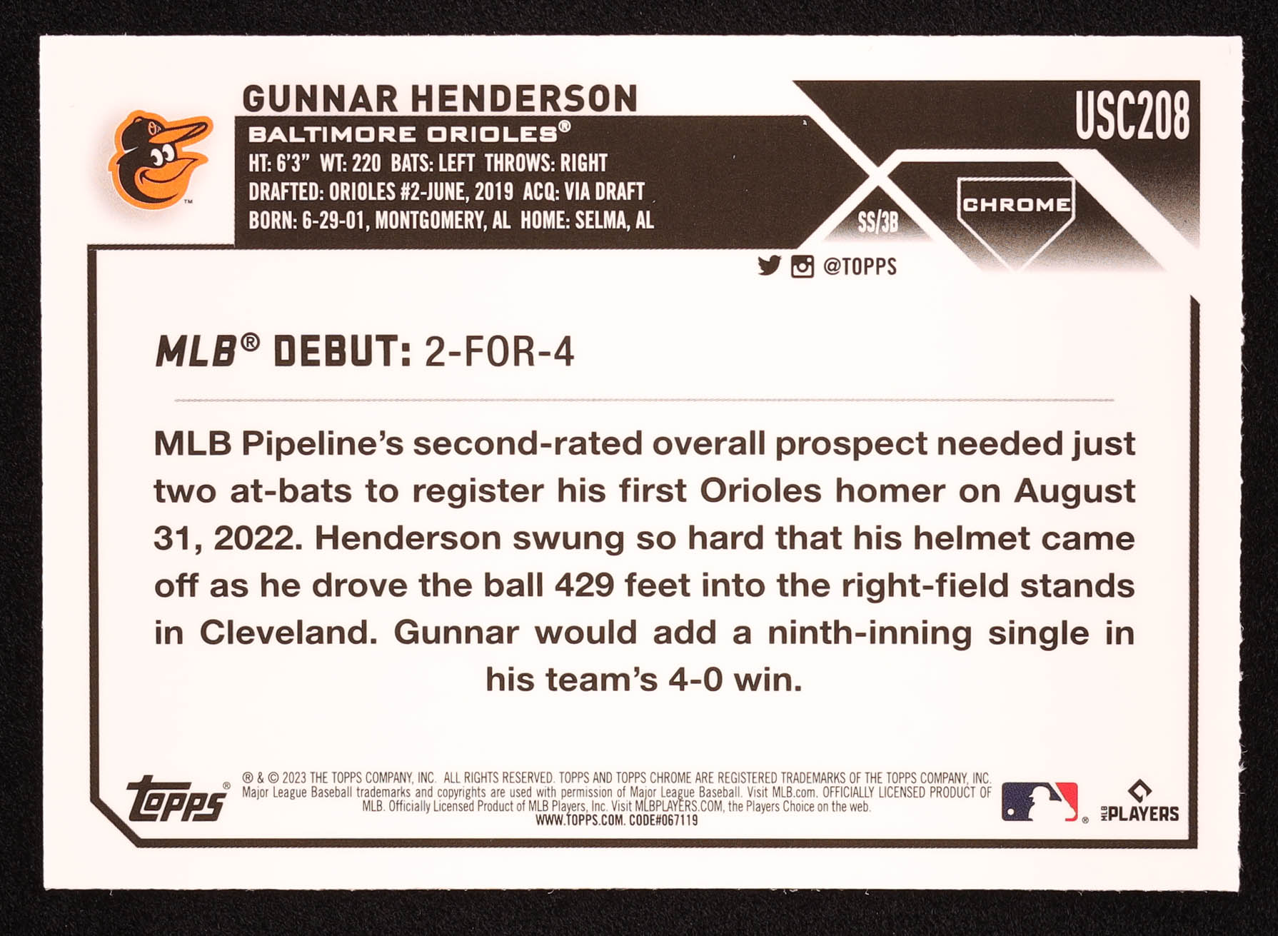 Gunnar Henderson 2023 Topps Chrome Update Refractors #USC208 RC