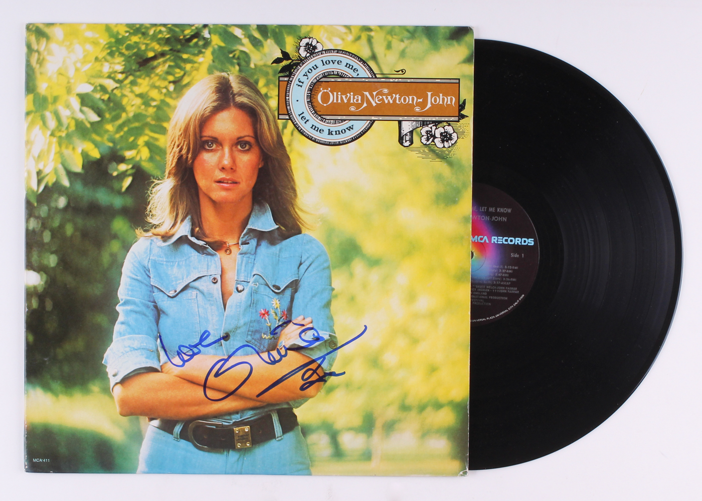 "If You Love Me, Let Me Know" vinyl record album. Cover has been hand-signed in blue felt-tip pen by Olivia Newton-John. Includes vinyl record as shown. Please note, the cover has wear.