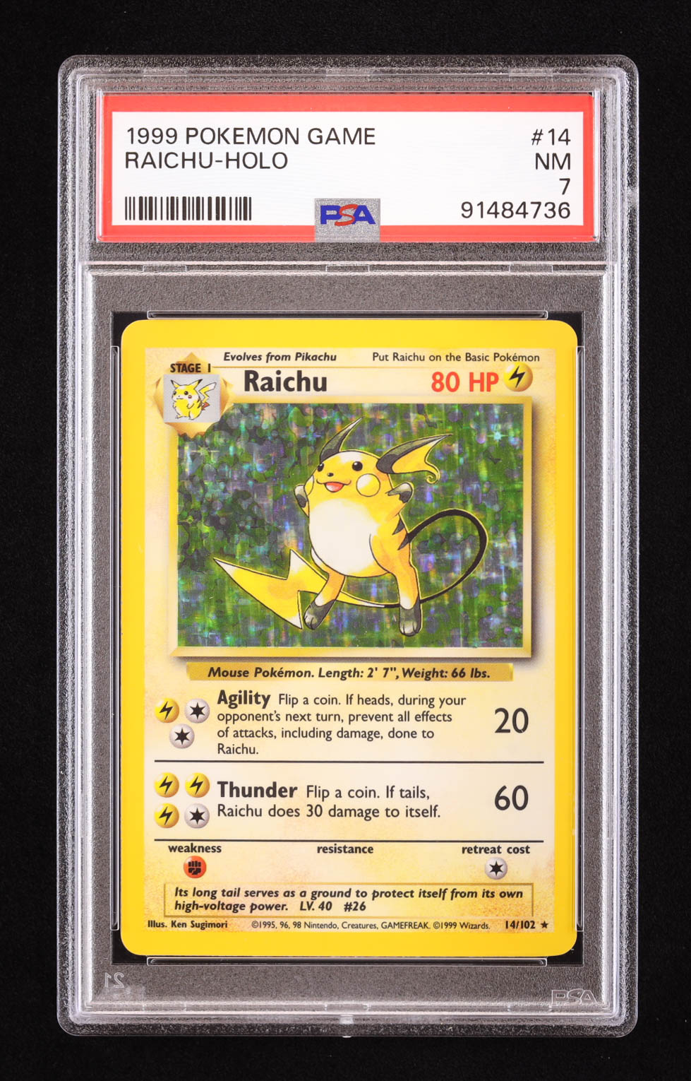 Raichu 1999 Pokemon Base Unlimited #14 Holo (PSA 7)