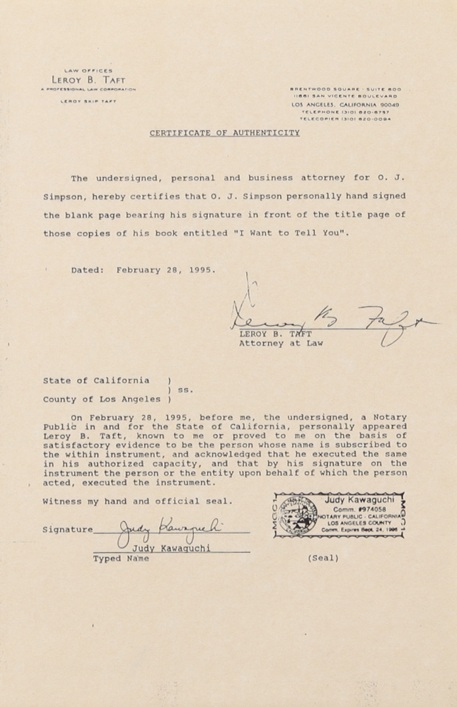 O. J. Simpson Signed "I Want To Tell You" Hardcover Book (JSA)