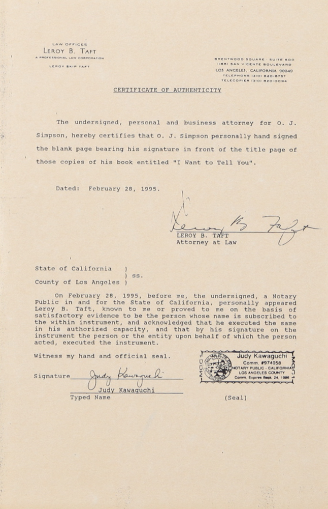 O. J. Simpson Signed "I Want To Tell You" Hardcover Book (JSA)