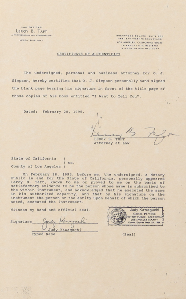 O. J. Simpson Signed "I Want To Tell You" Hardcover Book (JSA)