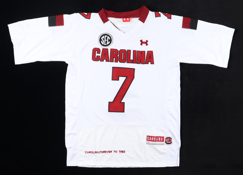 Under Armour football jersey. Everything sewn on, size 50. Hand-signed and inscribed by Jadeveon Clowney. The jersey is limited edition and hand-numbered #1 / 7. Please note, there are stains the name plate and near the reverse number.