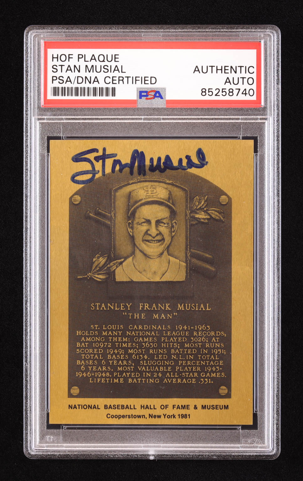 Stan Musial Signed Hall of Fame Metal Plaque (PSA)