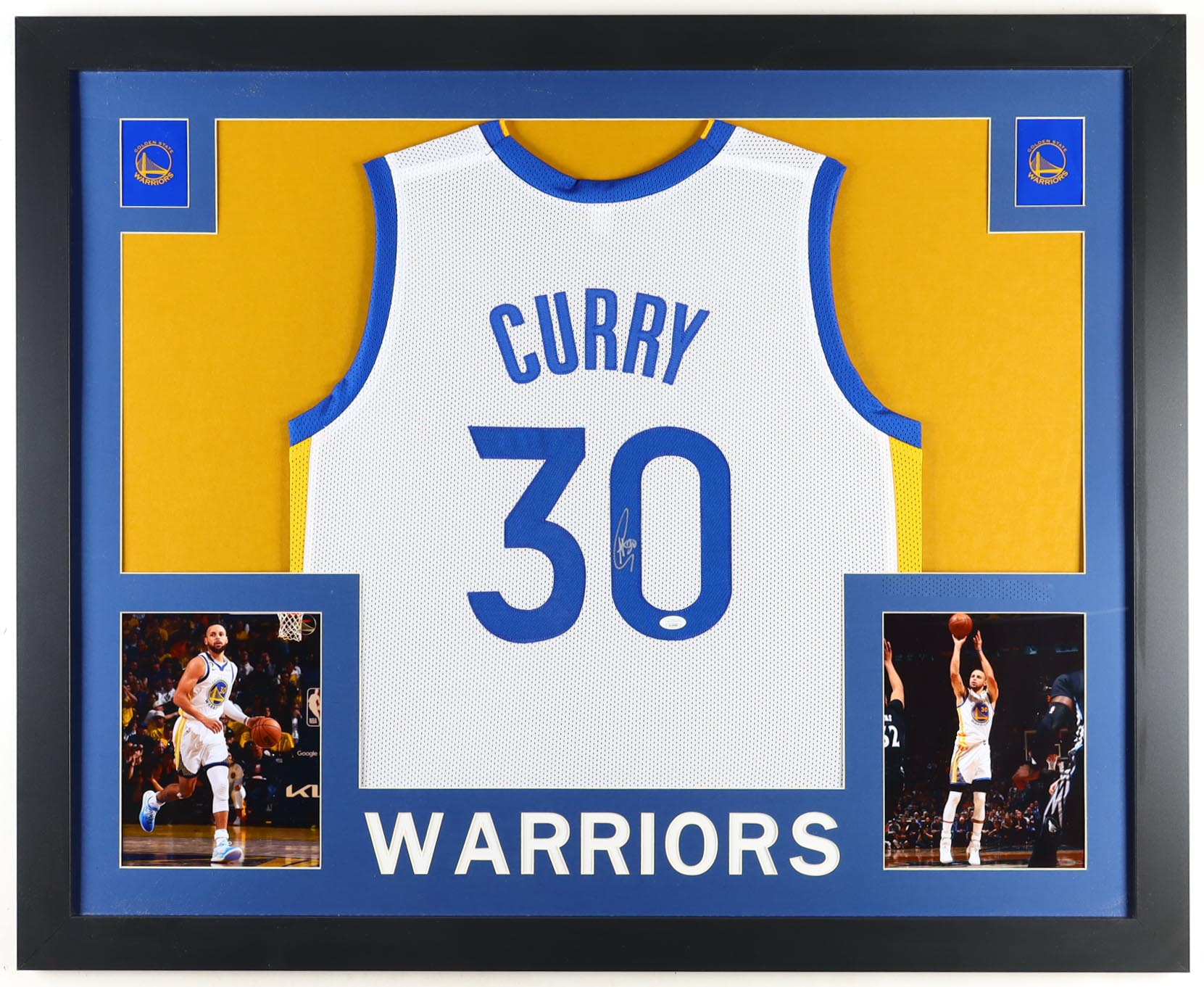 Custom frame measures 35" x 43" in size and features a jersey hand-signed by Stephen Curry.