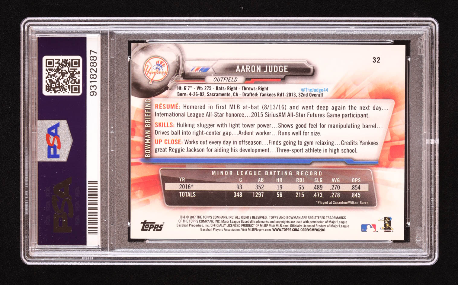 Aaron Judge 2017 Bowman #32 RC (PSA 10)