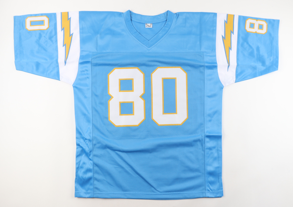 Custom jersey. Everything is sewn on, size L. Hand-signed and inscribed by Kellen Winslow (HOF).