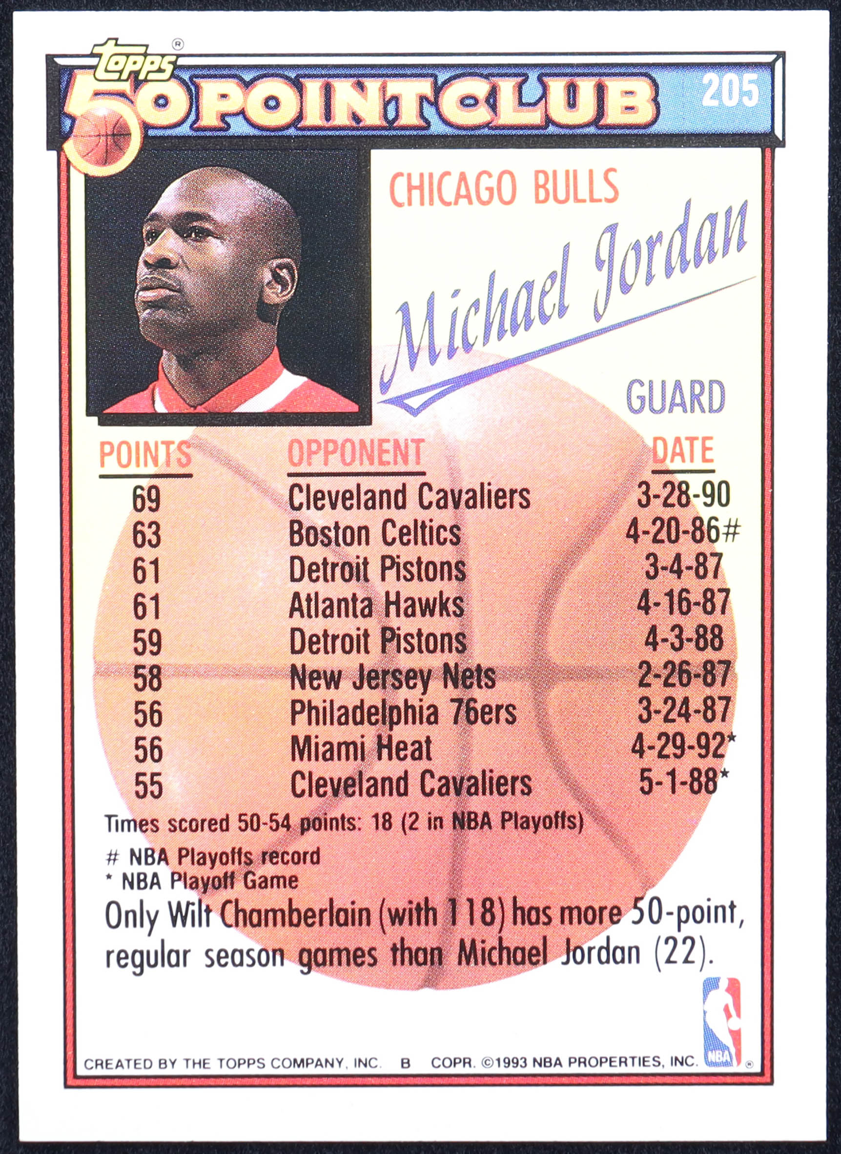 Michael Jordan 1993 Topps 50 Point Club #205