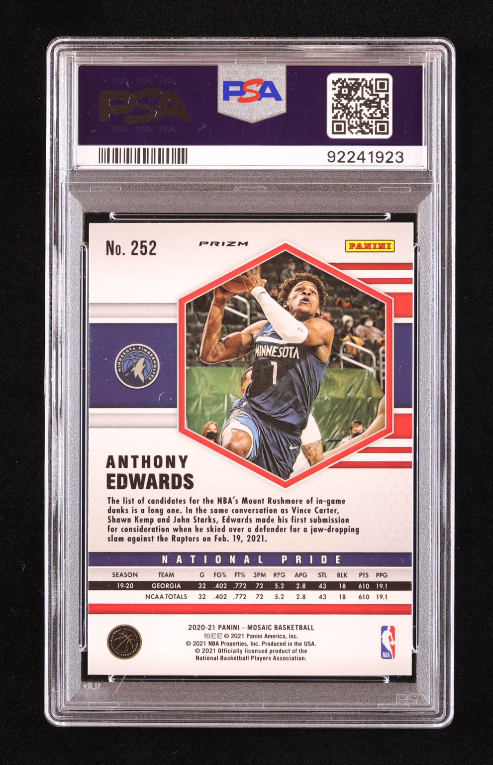 Anthony Edwards 2020-21 Panini Mosaic Mosaic Reactive Red #252 RC (PSA 10)