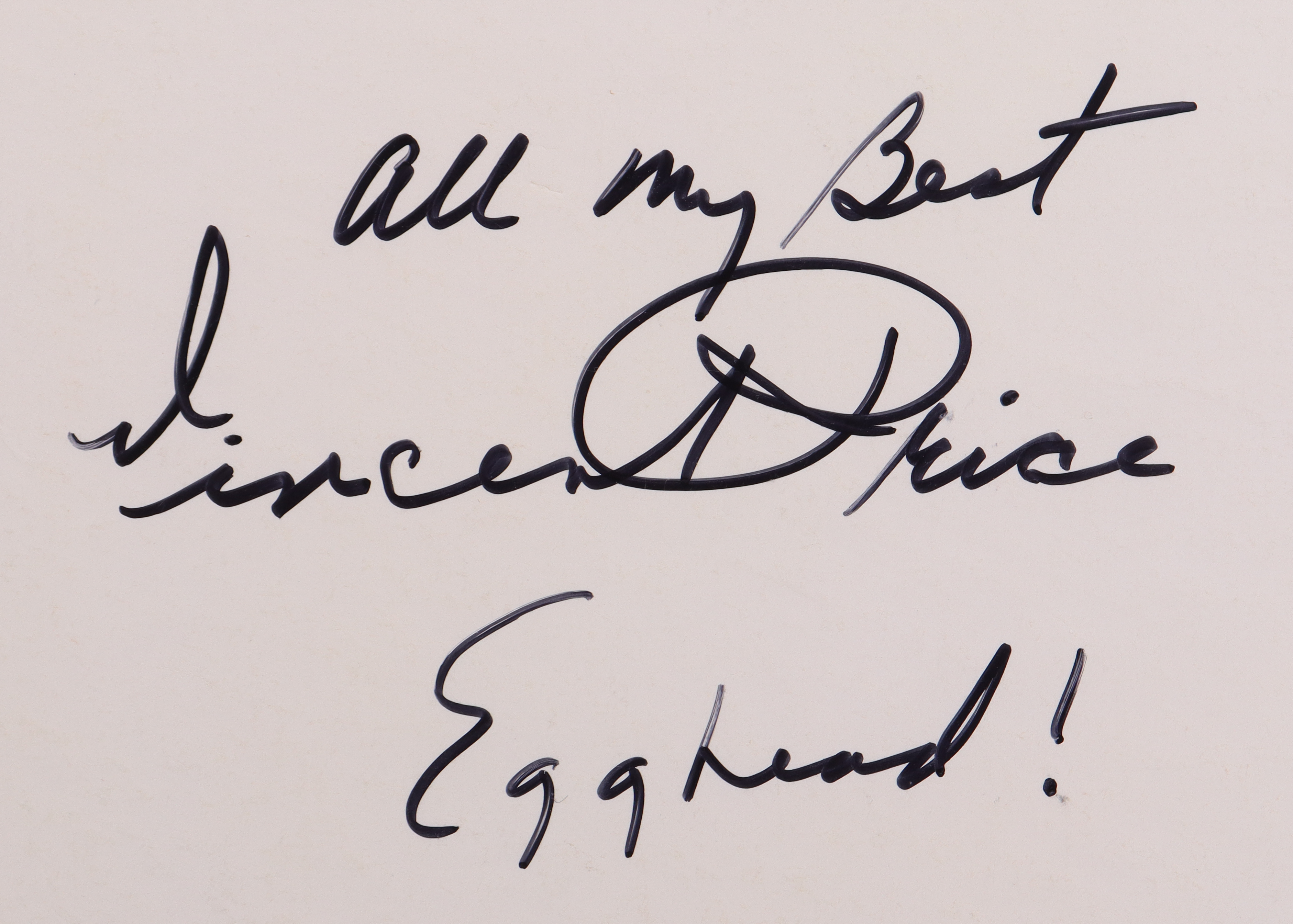 Vincent Price Hand-Drawn & Signed "Egghead" Portrait Inscribed "All My Best" & "Egghead!" (PSA)